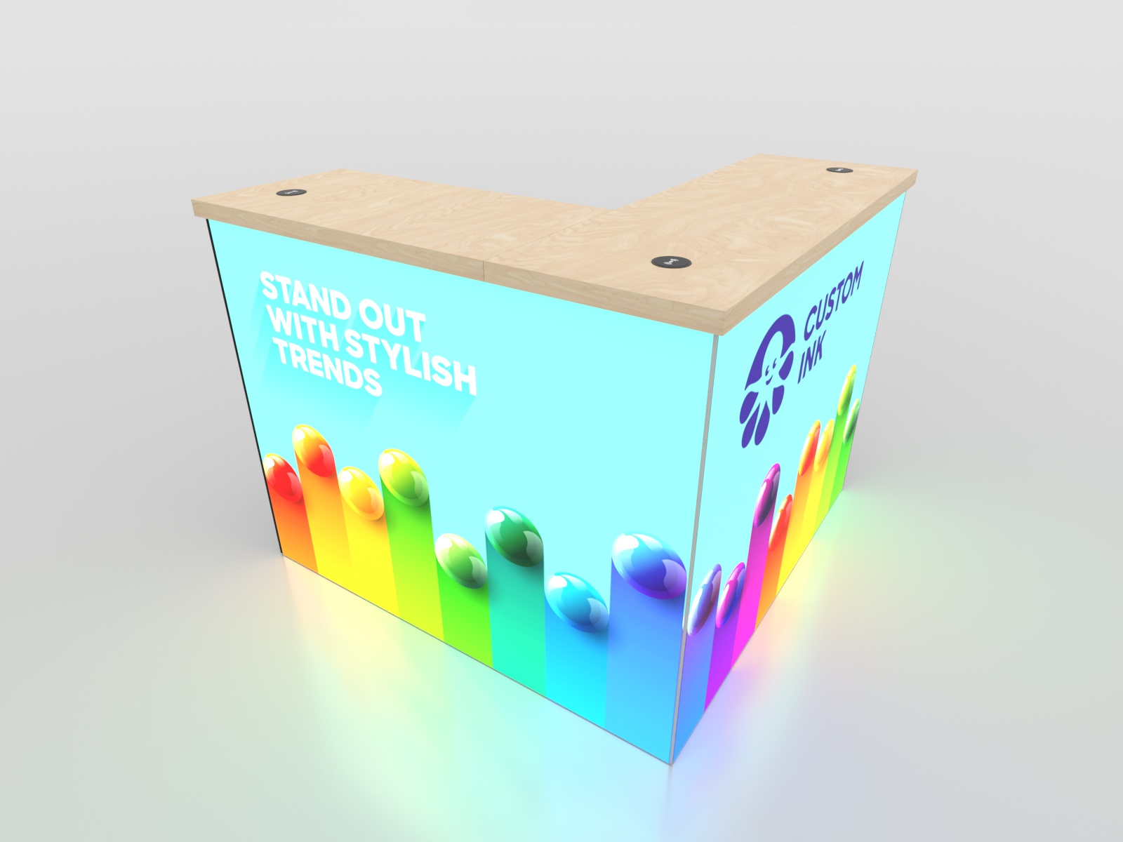 When choosing the right counter or pedestal for your display, consider how you will use it on the show floor. Do you need locking storage? Will the counter or pedestal hold a lead retrieval machine, laptop, or other electrical device? If so, you will need wire management. That may be as simple as ordering a grommet for the counter. If you are planning to use a tablet computer, consider the tablet insert option for the counter top. This option is practical, attractive, and secure for many tablets, such as an iPad.