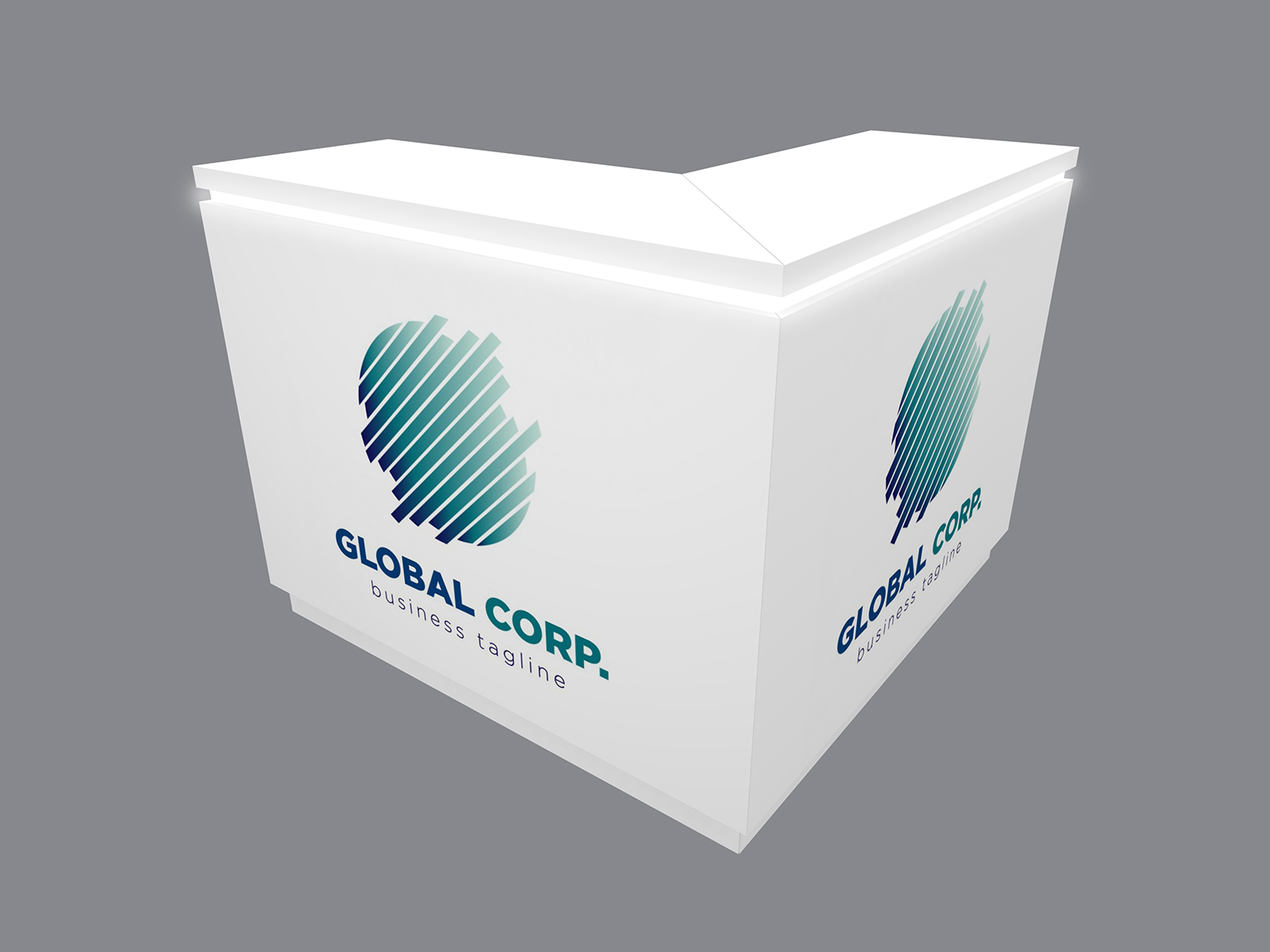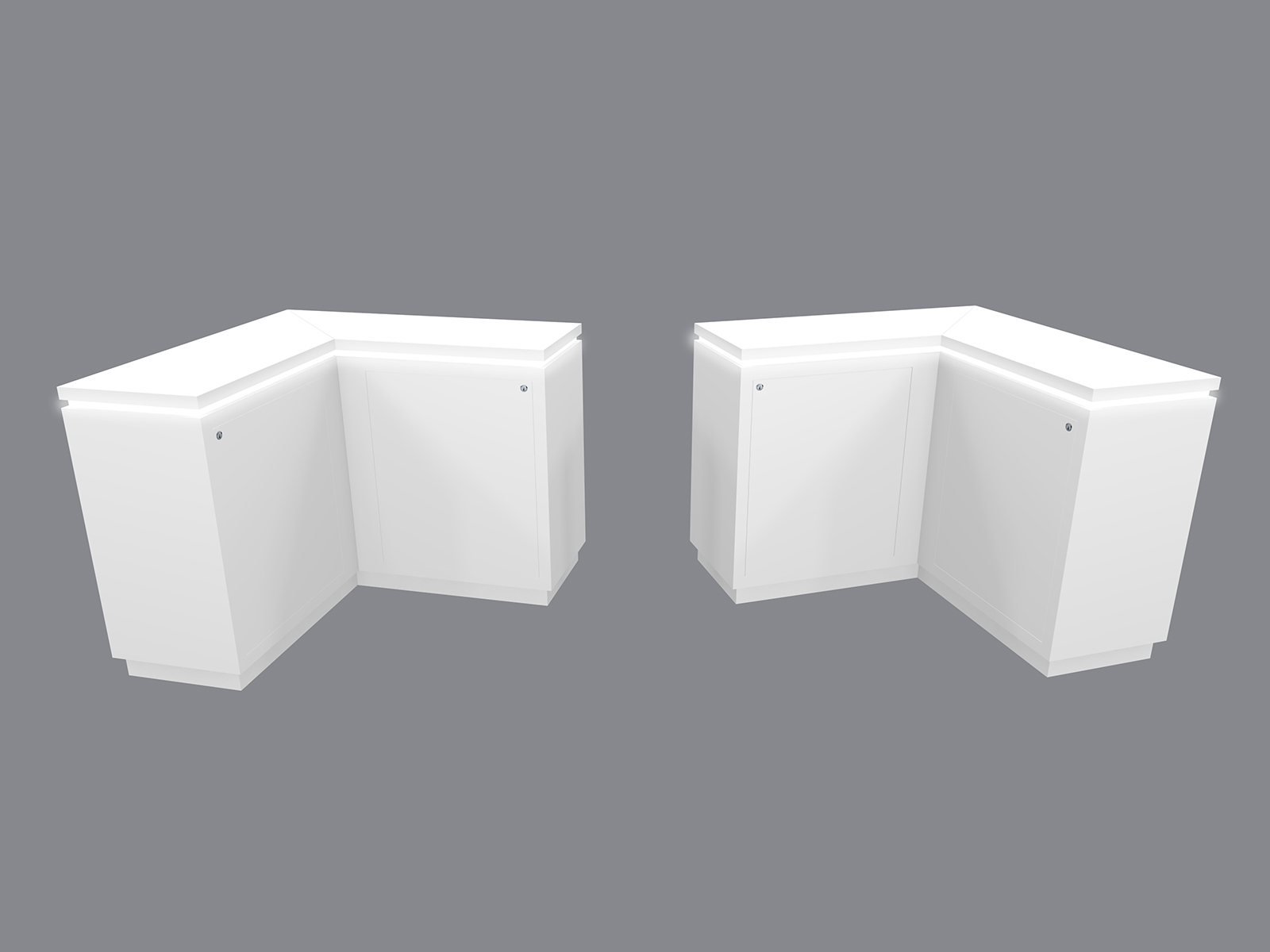 RE-1516 Trade Show Custom Rental Counter -- Image 2RE-1516 Trade Show Custom Rental Counter with Door and Interior Shelf -- Image 3RE-1516 Trade Show Custom Rental Counter -- Adjustable RGB Perimeter Lights