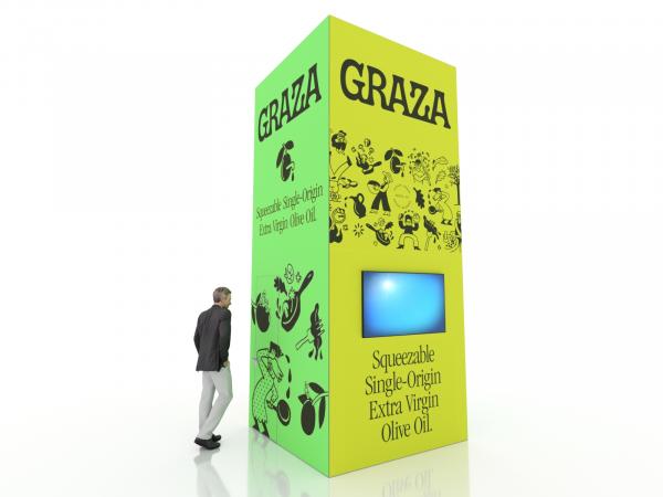 Towers are the ideal building block for creating a customized island exhibit. Start by choosing the tower size. Then add counters, workstations, lightboxes, and furniture to complete the design. For many exhibitors, flexibility is crucial. Their booth size and messaging often changes depending on the show and the audience. A tower serves as the central feature in the booth design but everything else can vary. Perfect!