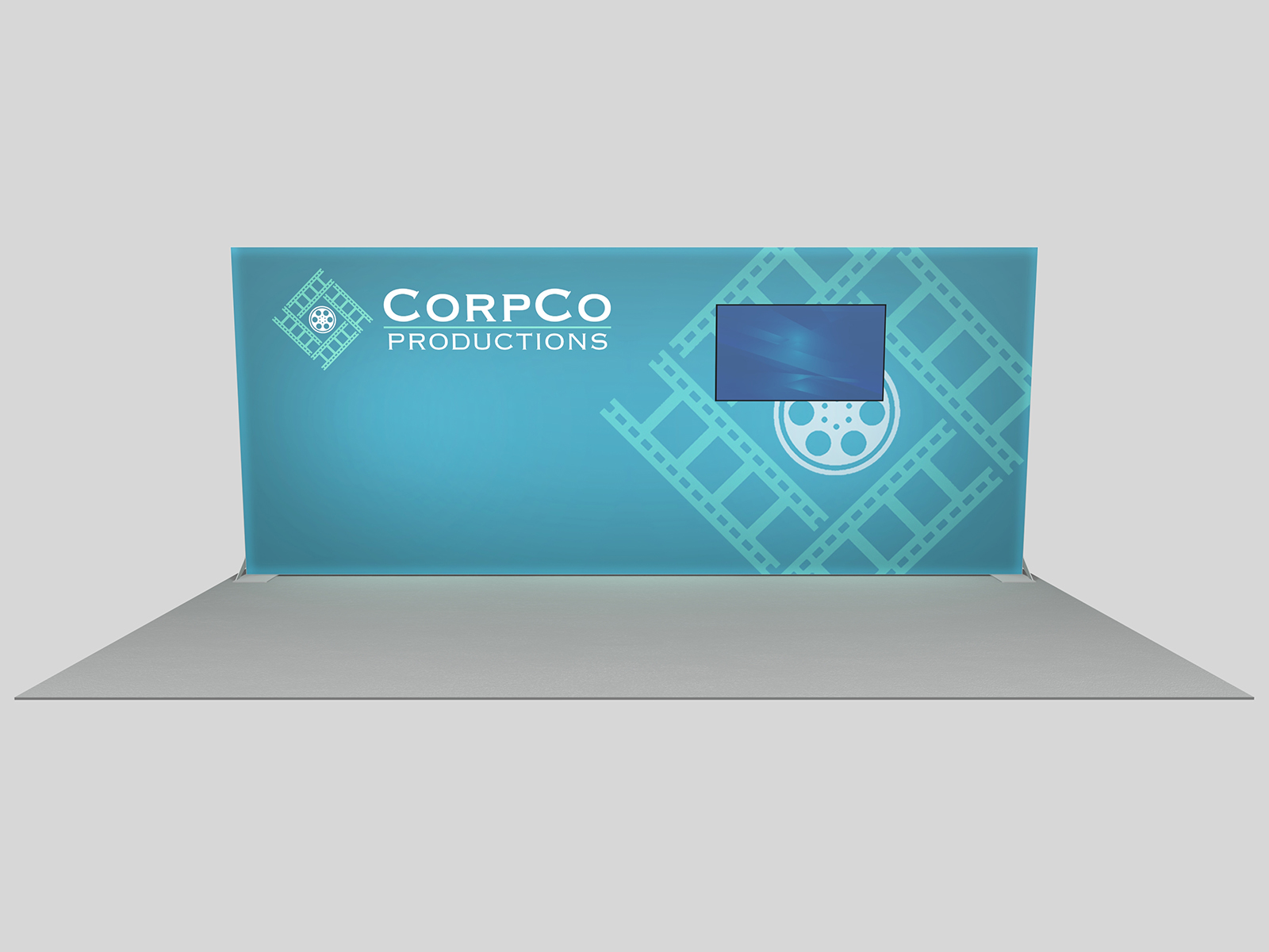 Quite often, a few custom elements added to the design can give the entire design a custom look even if it’s as simple as some colorful laminated workstations, shelves, or a reception counter. Custom laminated soffits and backlighting are also nice touches that are inexpensive and well worth the investment. As a bonus, if you re-rent the same exhibit, your second rental will most likely be less expensive, since your first rental covered the cost of those custom components.