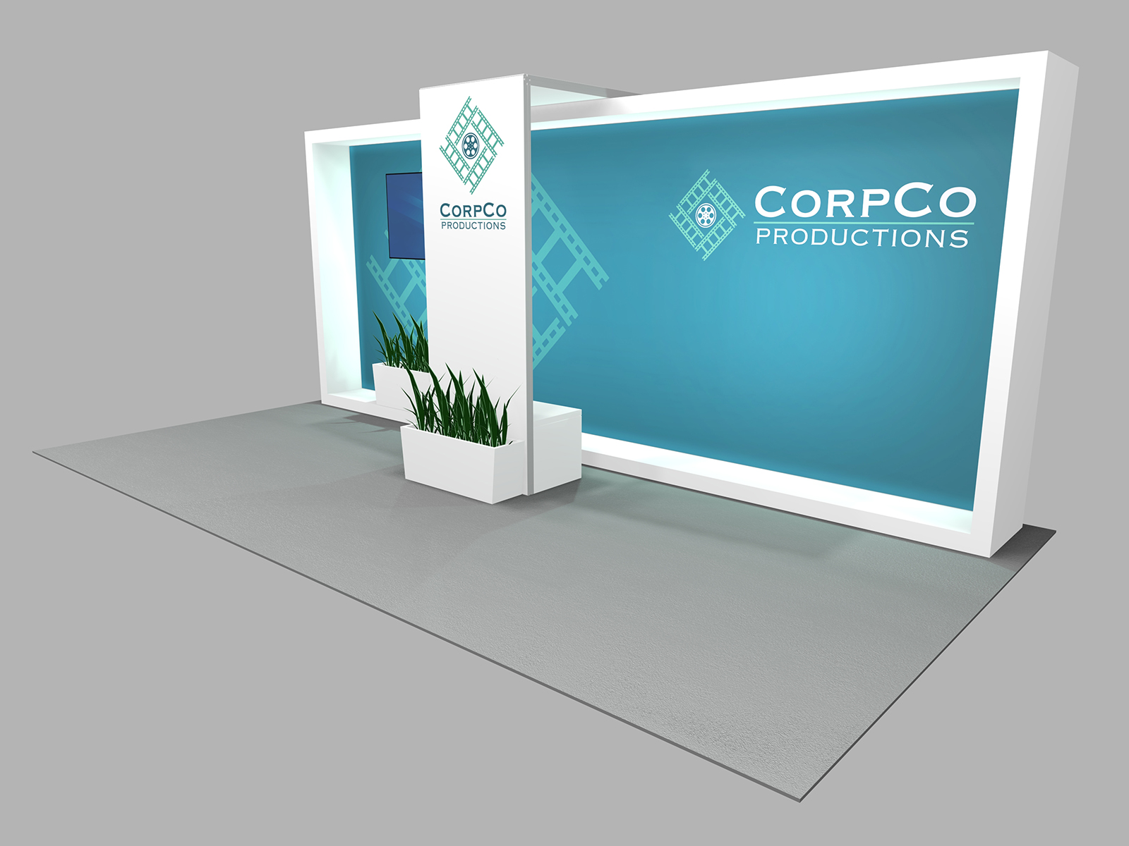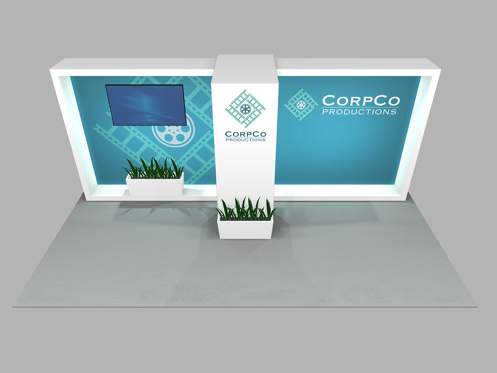 Quite often, a few custom elements added to the design can give the entire design a custom look even if it’s as simple as some colorful laminated workstations, shelves, or a reception counter. Custom laminated soffits and backlighting are also nice touches that are inexpensive and well worth the investment. As a bonus, if you re-rent the same exhibit, your second rental will most likely be less expensive, since your first rental covered the cost of those custom components.