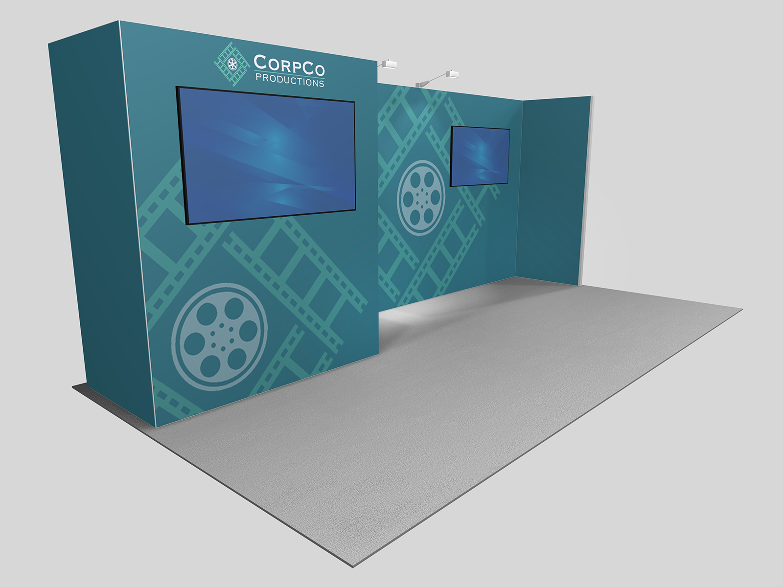 Quite often, a few custom elements added to the design can give the entire design a custom look even if it’s as simple as some colorful laminated workstations, shelves, or a reception counter. Custom laminated soffits and backlighting are also nice touches that are inexpensive and well worth the investment. As a bonus, if you re-rent the same exhibit, your second rental will most likely be less expensive, since your first rental covered the cost of those custom components.