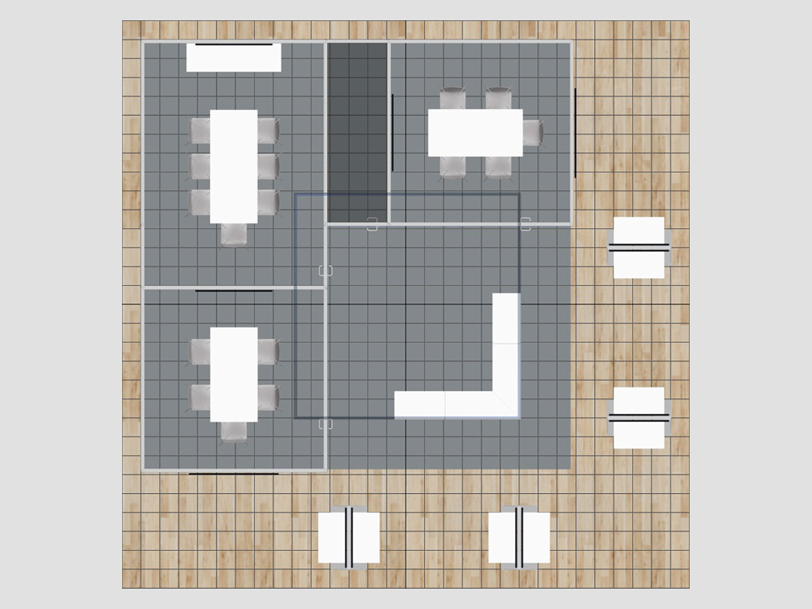 Not every trade show exhibit looks like a trade show exhibit. Take the RE-9224 rental for example. It’s all business with (3) enclosed conference rooms, (4) double-sided monitor kiosks, and a large reception counter with locking storage. In addition, there’s additional monitors in all the meeting spaces and even a counter in the largest one.