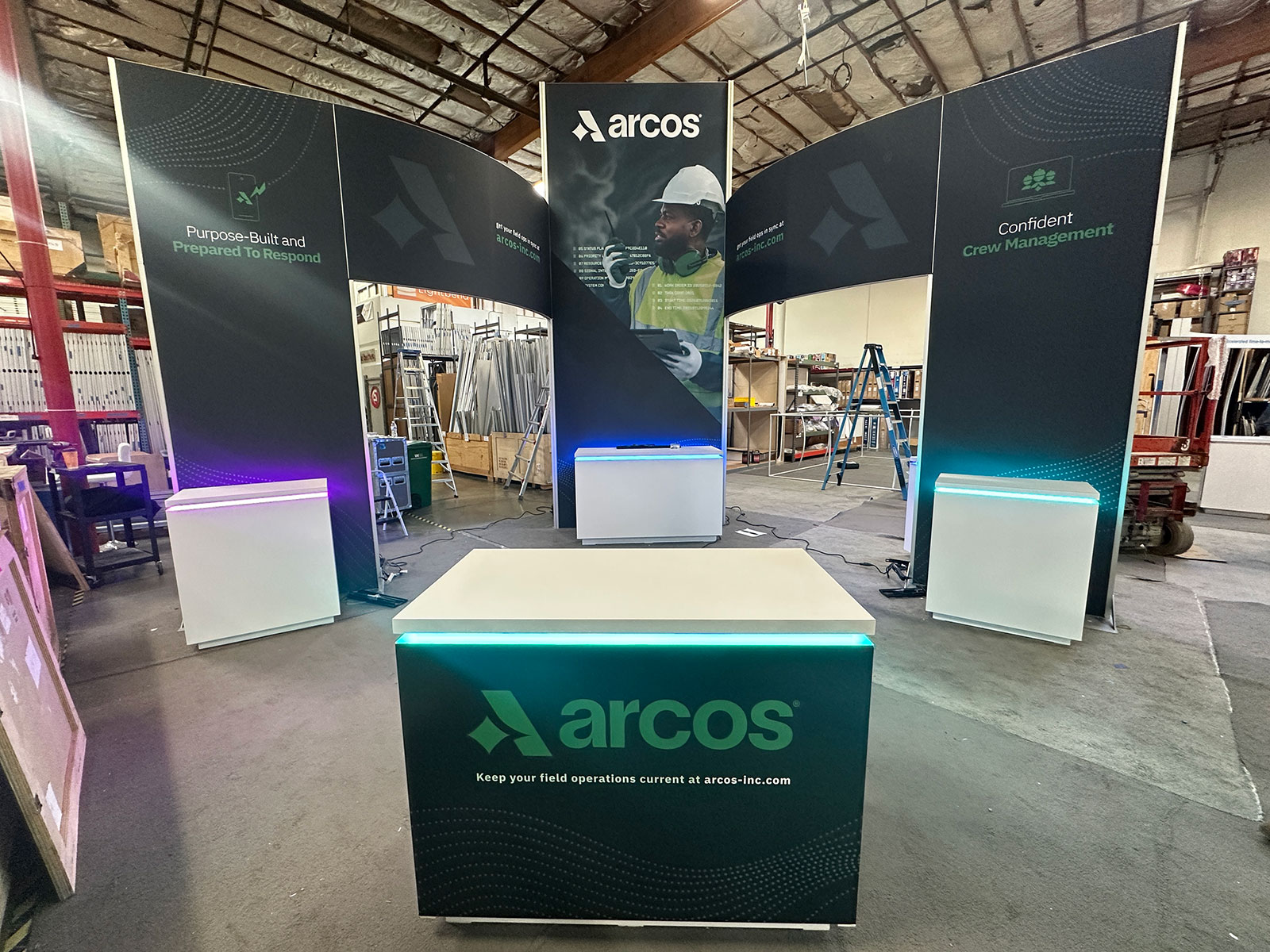 RENTAL: (2) RE-1043 Single-Sided Lightboxes Attached in L-Shape Configuration, RE-1572 L-Shaped Backlit Reception Counter, SEG Backlit Fabric Graphics RENTAL: (2) RE-1043 Single-Sided Lightboxes Attached in L-Shape Configuration, RE-1572 L-Shaped Backlit Reception Counter, SEG Backlit Fabric Graphics -- View 2 RENTAL: (2) RE-1043 Single-Sided Lightboxes Attached in L-Shape Configuration, RE-1572 L-Shaped Backlit Reception Counter, SEG Backlit Fabric Graphics -- View 3 RENTAL: (2) RE-1043 Single-Sided Lightboxes Attached in L-Shape Configuration, RE-1572 L-Shaped Backlit Reception Counter, SEG Backlit Fabric Graphics -- View 4