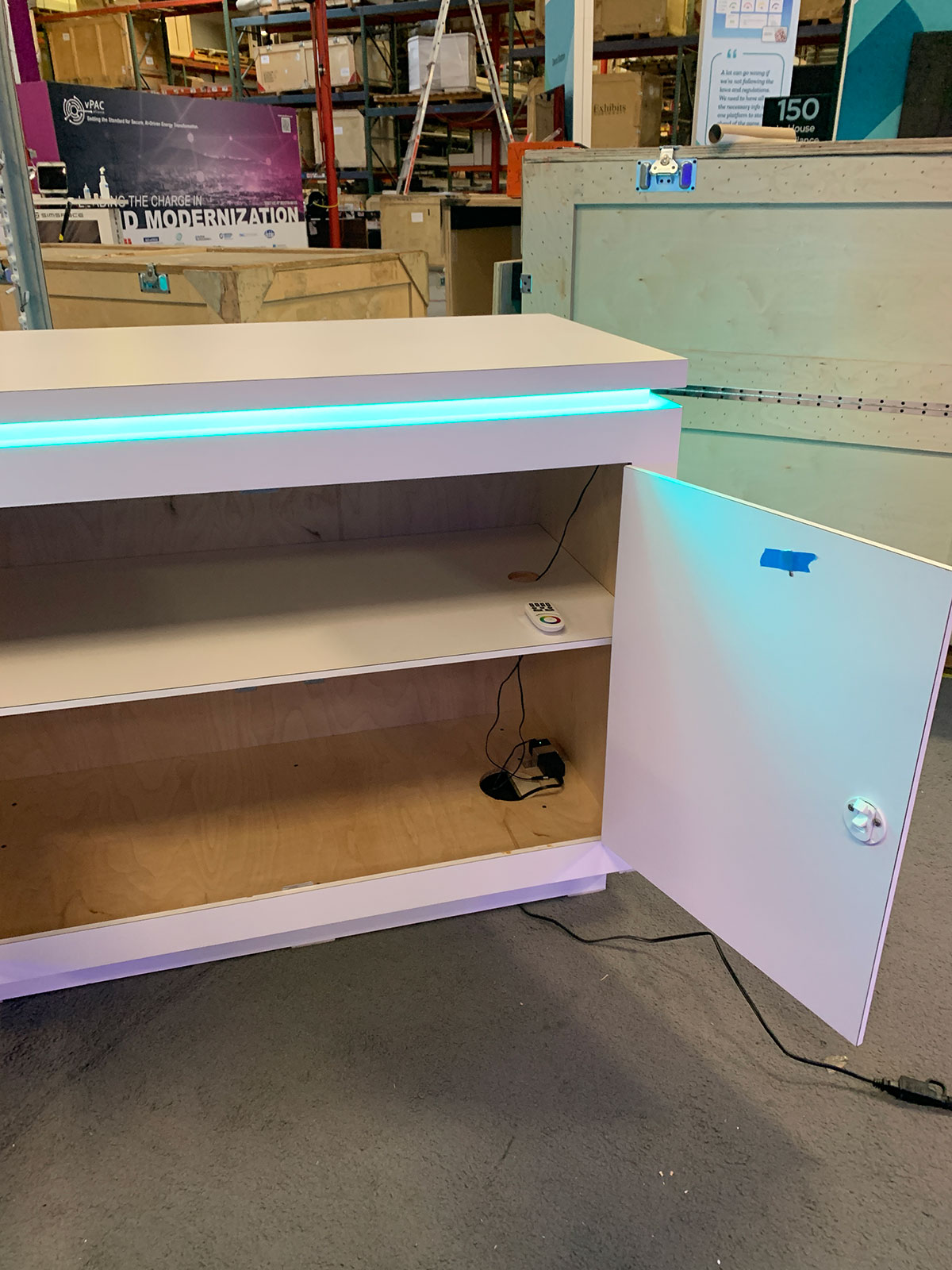 (2) MOD-1596 Custom Counters with RGB Adjustable LED Accent Lights, Vinyl Graphics, and Locking Storage (2) MOD-1596 Custom Counters with RGB Adjustable LED Accent Lights, Vinyl Graphics, and Locking Storage -- View 2