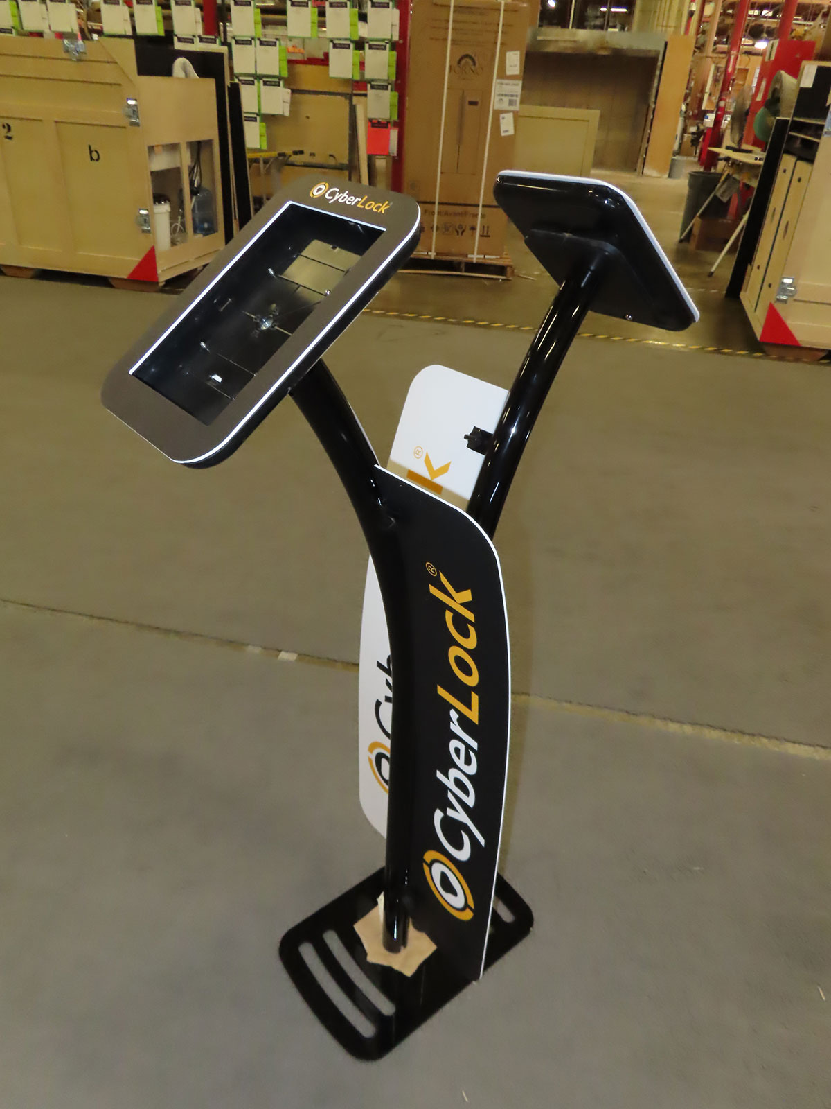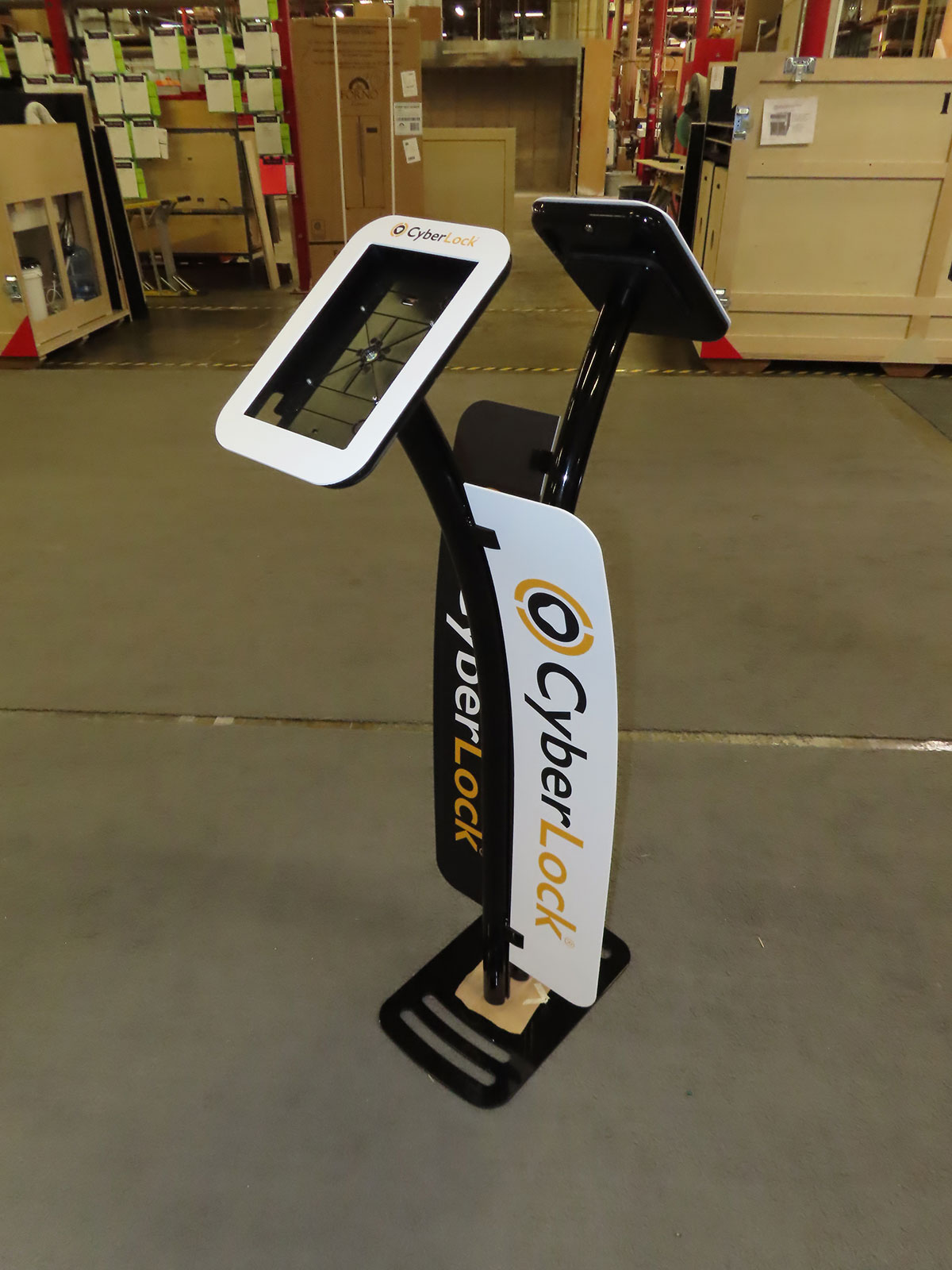 MOD-1334 iPad Stand with Locking Clamshells, Black Powder-coat Finish, and Graphic Wings and Faceplates [ORD-69716]