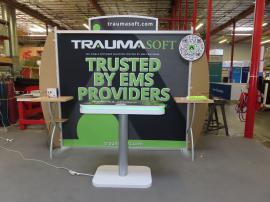 Modified ECO-2064 Sustainable Exhibit with Tension Fabric and Direct Print Graphics, Header, Acrylic Shlelves, Locking Storage, LED Lighting, Privacy Wall, Monitor Mount, and MOD-1716 Backlit Reception Counter with Locking Storage [ORD-67046]
