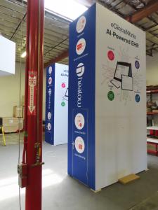 Custom Inline Exhibit with SuperNova Backlit Lightboxes, (4) Product Shelves, Storage Closet, Fabric and Direct Print Graphics, Reception Counter w/ Open Storage, and Counter w/ Locking Storage and Wireless Charging Pads Custom Inline Exhibit with SuperNova Backlit Lightboxes -- View 2 Custom Inline Exhibit with SuperNova Backlit Lightboxes -- View 3 Custom Inline Exhibit with SuperNova Backlit Lightboxes -- View 4 Custom Inline Exhibit with SuperNova Backlit Lightboxes -- View 5 Custom Inline Exhibit with SuperNova Backlit Lightboxes -- View 6