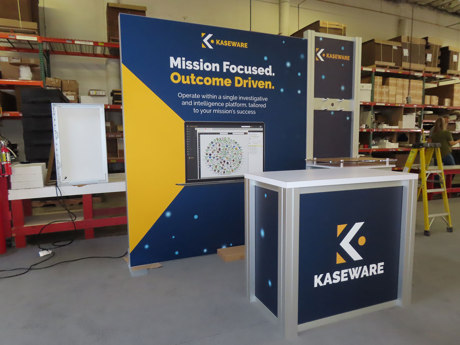 Custom Inline Exhibit with Backlit LB Graphics, Backwall Kiosk w/ Storage, Monitor Mount, and MOD-1278 Counter with Locking Storage Custom Inline Exhibit with Backlit LB Graphics, Backwall Kiosk w/ Storage, Monitor Mount, and MOD-1278 Counter with Locking Storage -- View 2 Custom Inline Exhibit with Backlit LB Graphics, Backwall Kiosk w/ Storage, Monitor Mount, and MOD-1278 Counter with Locking Storage -- View 3