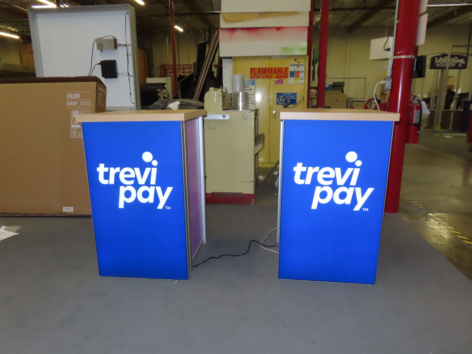 Backlit Pedestals with Fabric Graphics, Electrical Grommets, and