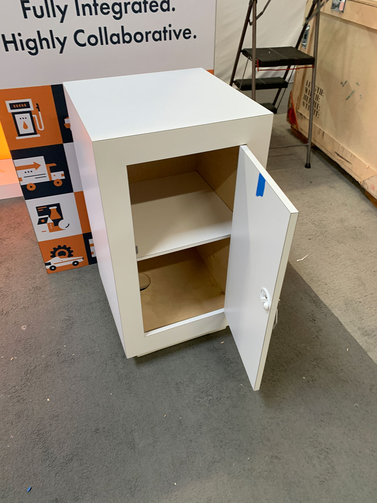 Demo Counters with Custom White Laminated Tops and Recessed RGB
