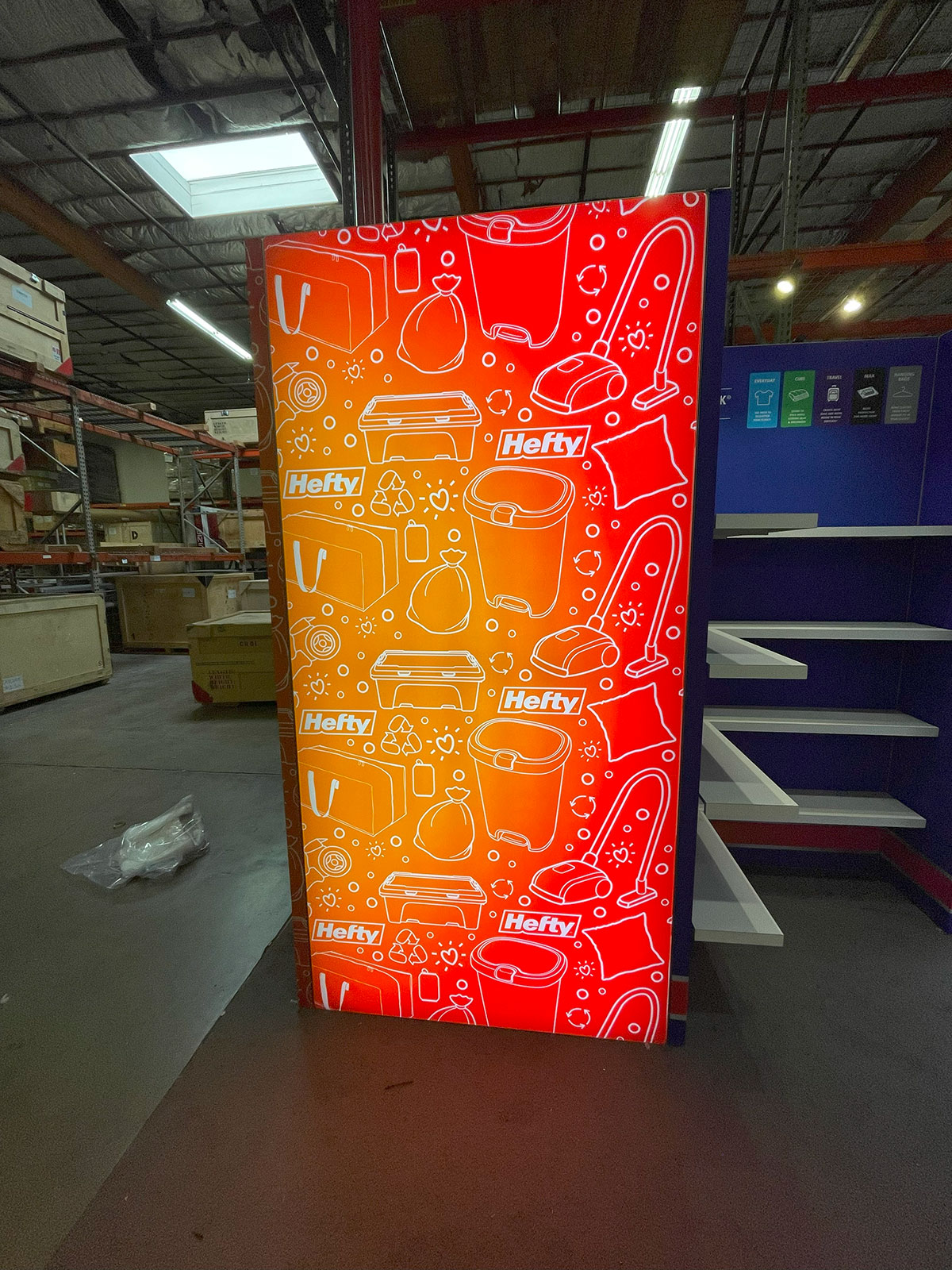Design with (1) 110" W x 96" H Single-Sided Lightbox, (2) 60" W x