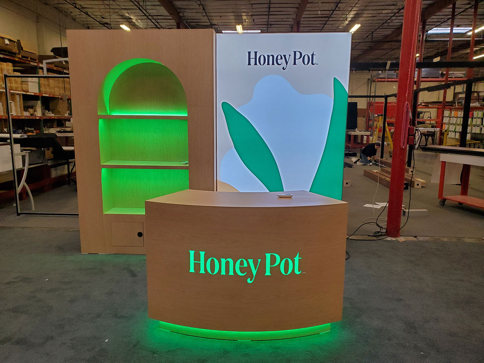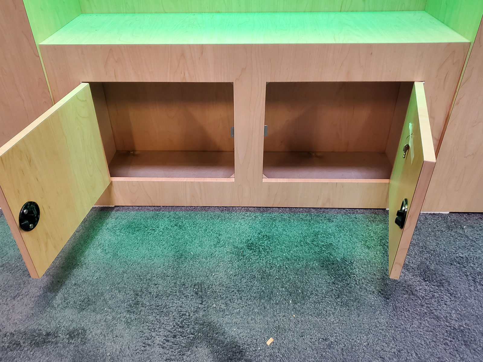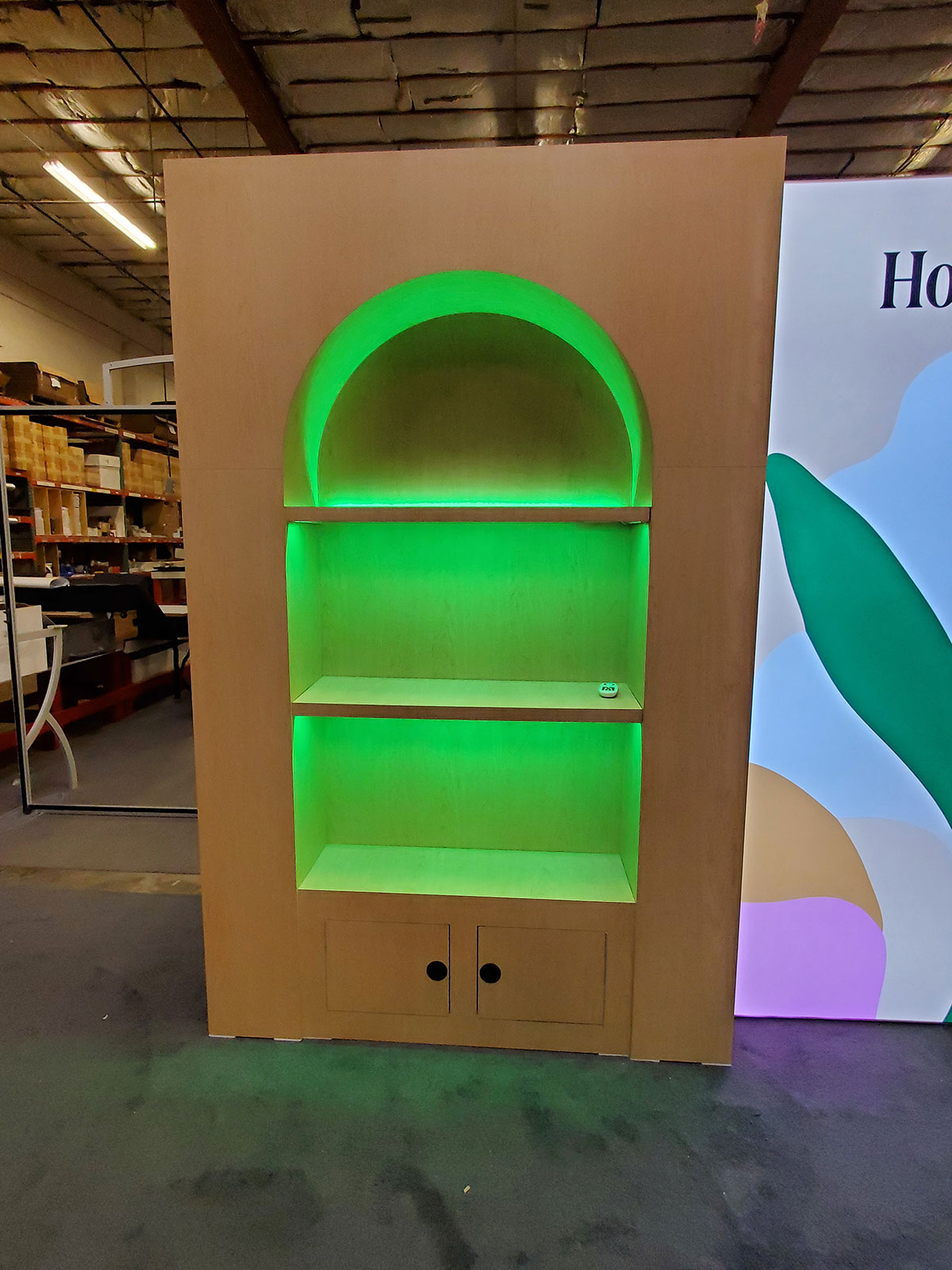 Modified VK-1364 Custom Inline with SuperNova Backlit Graphics. Arch Shelving Unit, RGB LED Accent Lights, Locking Storage, and Modified MOD-1584 Counter with Backlit Logo Modified VK-1364 Custom Inline with SuperNova Backlit Graphics -- View 2 Modified VK-1364 Custom Inline with SuperNova Backlit Graphics -- View 3 Modified VK-1364 Custom Inline with SuperNova Backlit Graphics -- View 4 Modified VK-1364 Custom Inline with SuperNova Backlit Graphics -- View 5