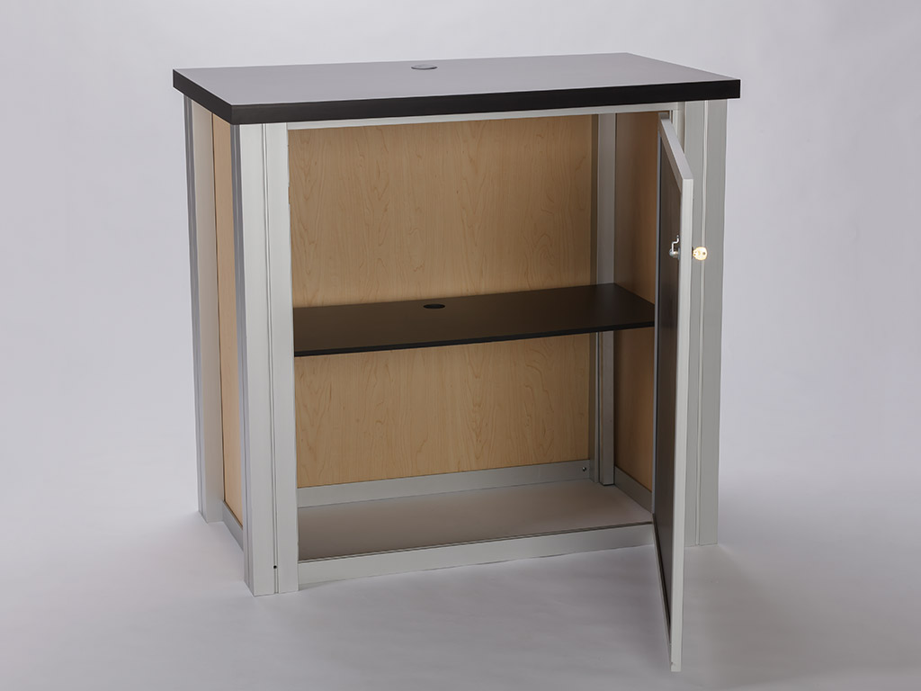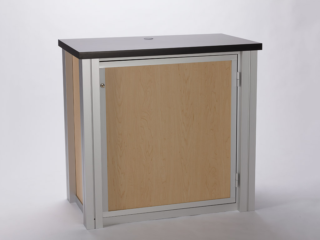 RE-1202 Rental Display / Rectangular Counter / Workstation -- Image 2Most counters and workstations offer bold graphic opportunities with attachable or removable infill panels. And they all come equipped with locking doors for secure storage. Need more than one. We have a large inventory of the most popular counters and pedestals.