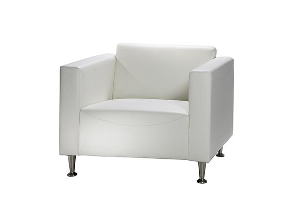 Baja Chair -- Trade Show Furniture RentalClean and modern bright white vinyl club chair with silver brushed metal legs is comfortable and stylish. Size = Length 36", Depth 30.5' , Height: 28.