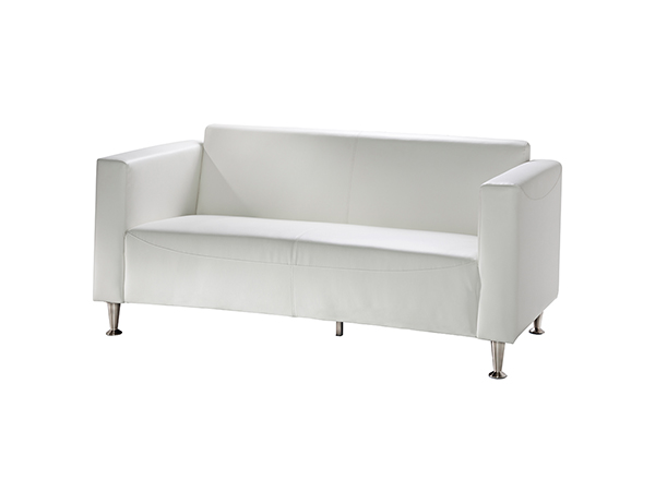 Baja Loveseat -- Trade Show Furniture RentalClean and modern bright white vinyl loveseat with silver brushed metal legs is comfortable and stylish. Size = Length 61", Depth 30.5' , Height: 28.