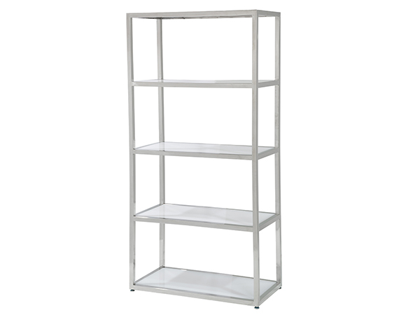 Posh Shelving -- Trade Show Rental FurnitureShelving with Polished Aluminum Frame and Five Clear Acrylic Shelves. Use for Display or Back Bar.  Dims: 36" L x 18" D x 72" H