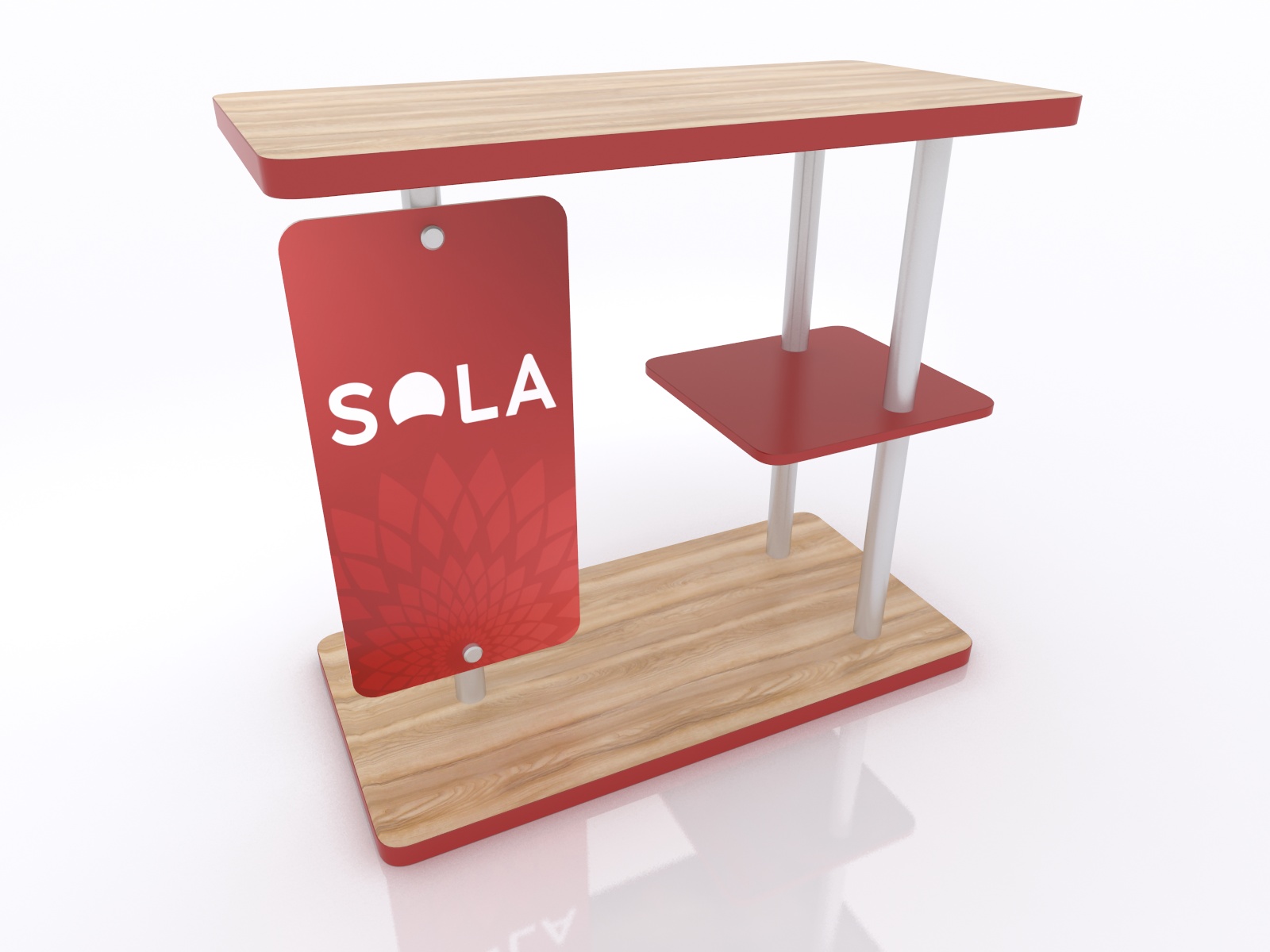 When choosing the right counter or pedestal for your display, consider how you will use it on the show floor. Do you need locking storage? Will the counter or pedestal hold a lead retrieval machine, laptop, or other electrical device? If so, you will need wire management. That may be as simple as ordering a grommet for the counter. If you are planning to use a tablet computer, consider the tablet insert option for the counter top. This option is practical, attractive, and secure for many tablets, such as an iPad.