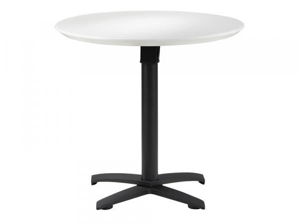 Unique 32" Sonoma outdoor cafe table with white counter top and black metal star base. Dims: 32" R, 30" H