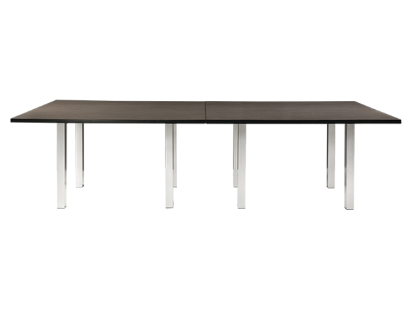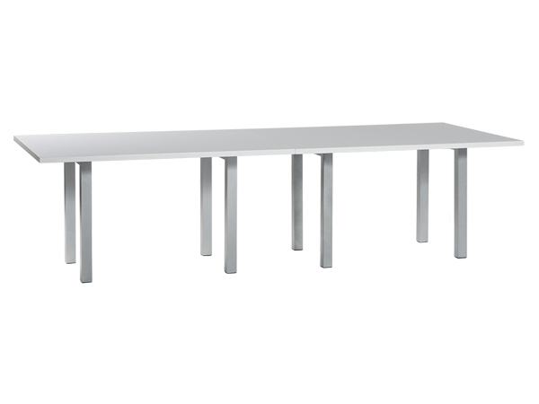 Modern conference table with laminate top and silver base. Dims: 120" L x 48" D x 29" H