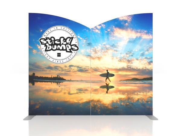 For example, a 10 ft. curved frame has four front panels and two end panels. And 8 ft. frame has three front panels. The fabric panels are Velcro-compatible and are available in over 20 colors. The graphic mural panels are laminated for durability and UV protection.