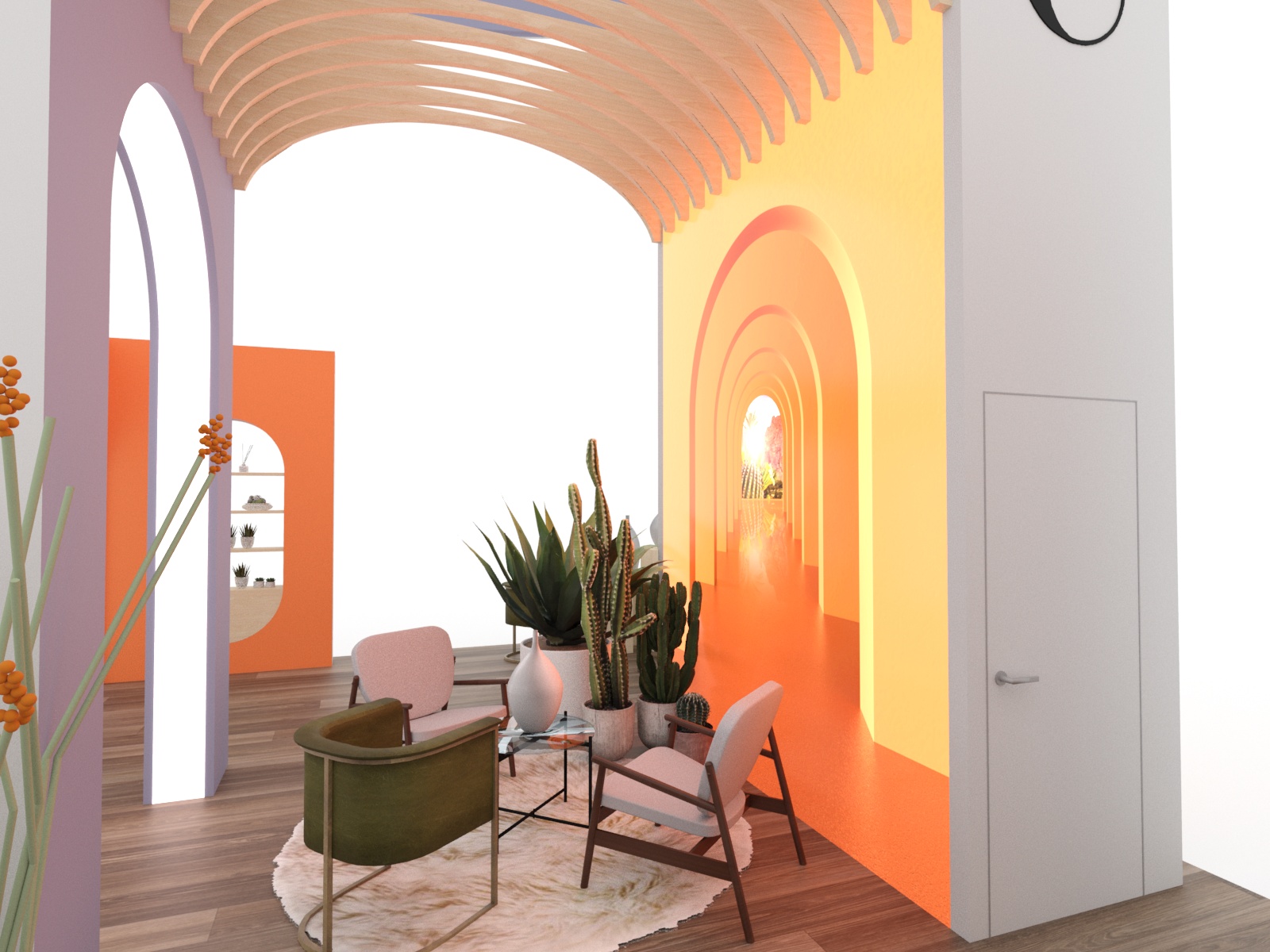 Every exhibitor wants to be the “It” exhibit at their trade show. With the VK-5180, your display will be the talk of the show hall. The custom arches welcome attendees into your exhibit from multiple angles. The casual yet elegant seating offers your guests a quiet space to relax and discuss business. The curved reception counter blends with the arches, and the open storage is ideal for distributing literature or product samples as guests enter the booth space.