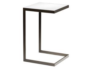 Versatile, small, half-round "C" shaped table with bronze frame and wood laminate top fits over most seating. Dimensions:  15.75"L 15.75"D 24"H