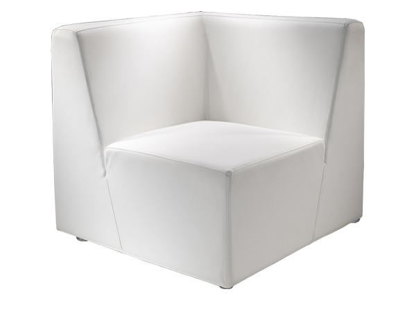 Brighton Corner Chair, White (CESS-136) -- Trade Show Rental Furniture Elevate your space with this comfortable modern indoor/outdoor corner chair in a clean white vinyl or rich, linen-textured fabric. Create single seating arrangements or pair with the modular Brighton Collection to create alluring sofas, sectionals, and large lounges. Dimensions: 32.5"L 32.5"D 29.75"H