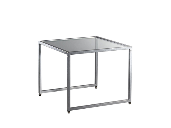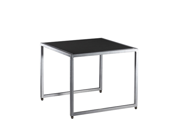 This simply stylish silver powder coated metal end table with attractive sled base, pairs with any seating to create a warm environment at your event or conference. Available in white or black laminate or glass top. Dimensions: 21.5"L x 21.5"D x 17.75"H