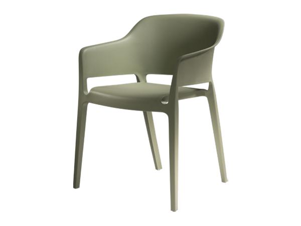 Casual yet sophisticated chair suitable for both indoor and outdoor spaces. Available in warm sand and sage green. Dimensions: 21.5"L x 20.5"D x 30.5"H