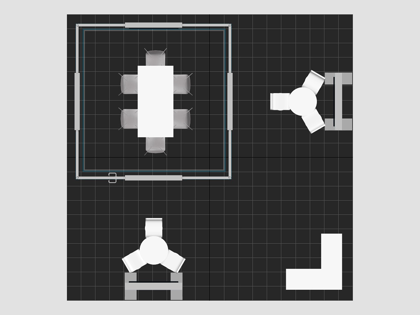 • Conference Room (130" x 130" x 95" High, w/ (4) 48" W x 120" H Single-Sided Lightboxes