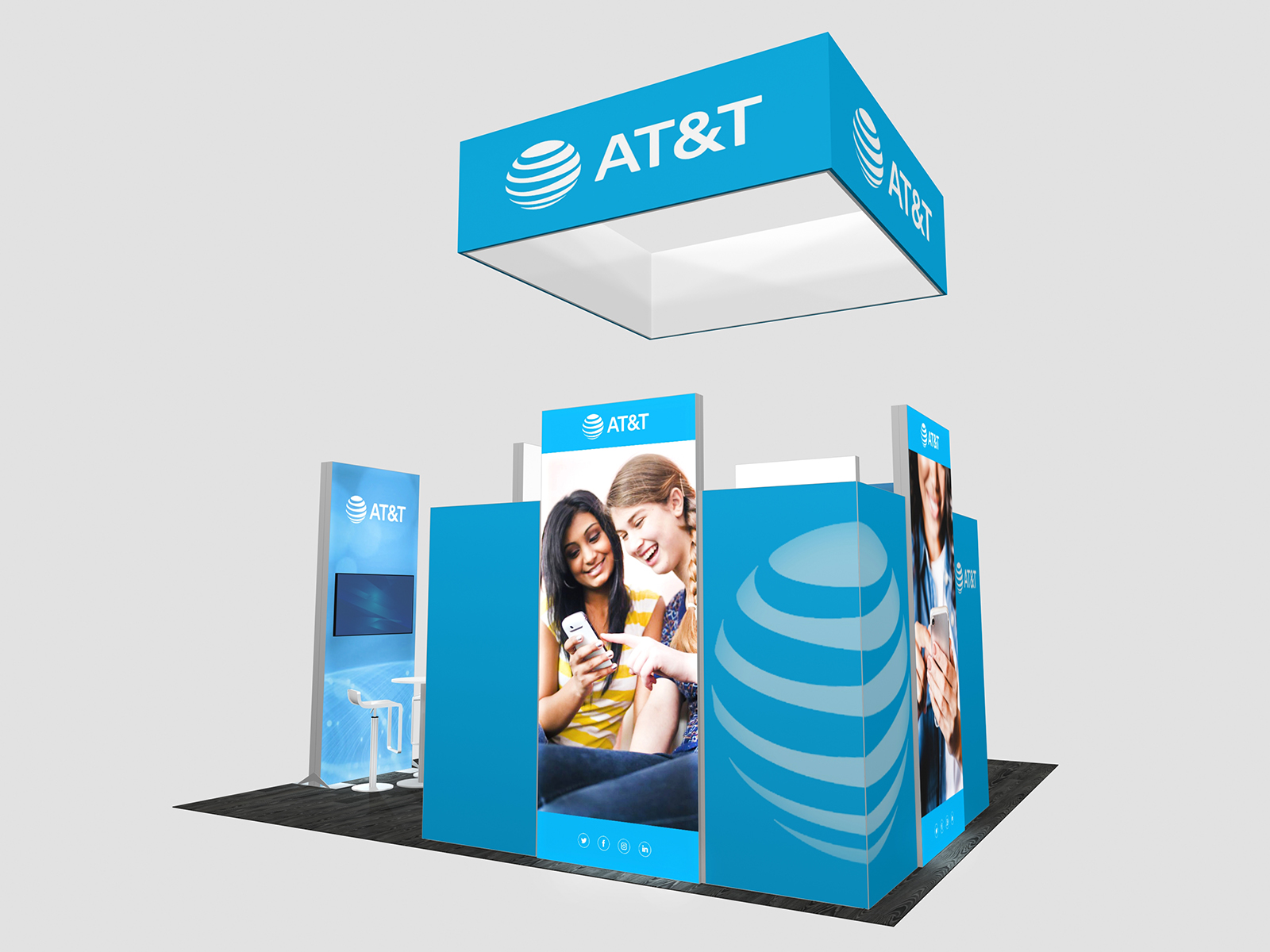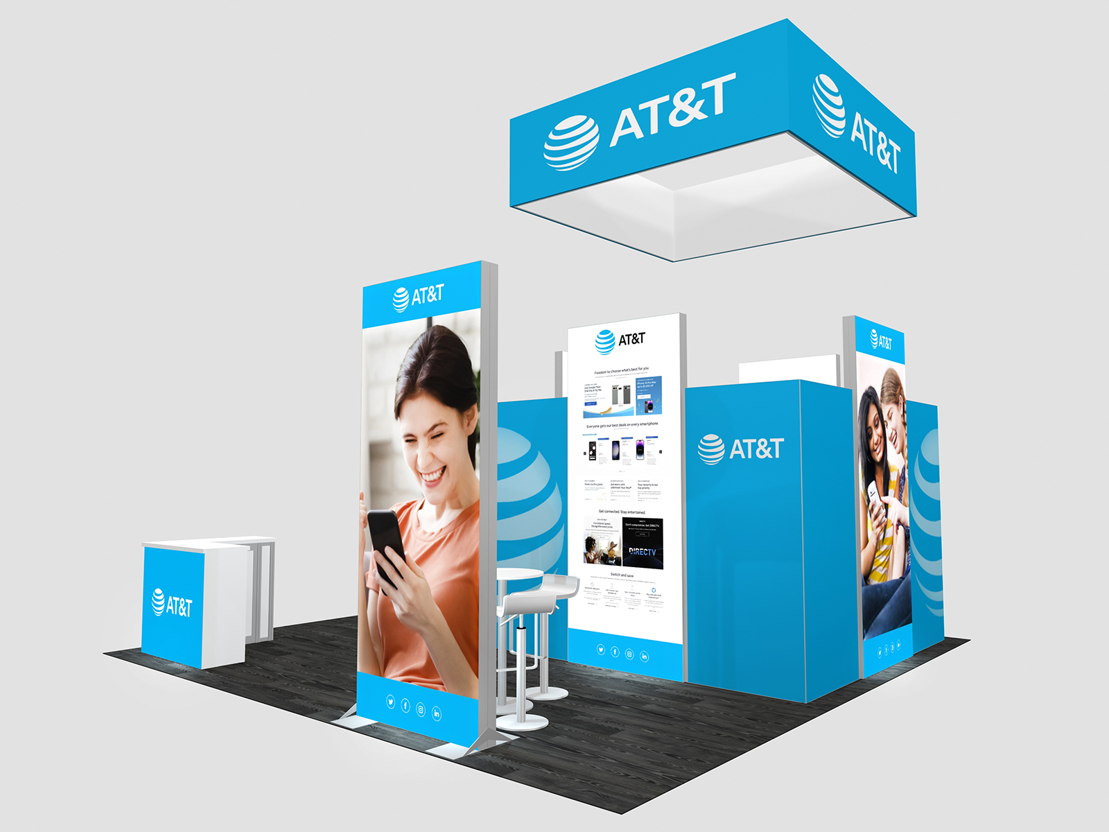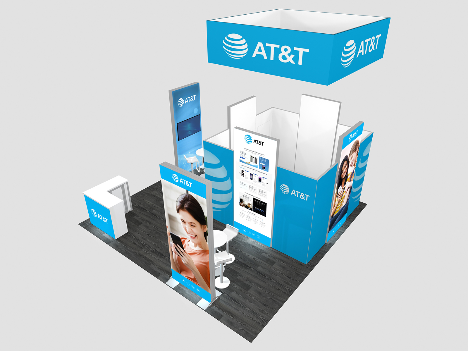 VK-5208 Island Trade Show Exhibit -- Image 1For many companies, trade shows are the perfect opportunity to schedule meetings with new and existing clients. These exhibitors require private and semi-private space in their booth that's both comfortable and attractive. The VK-5208 and RE-9181 feature conference room and meeting space variations. Both have full-enclosed conference rooms with internal and external fabric graphics. Surrounding the rooms are branded charging tables and chairs for informal meetings.