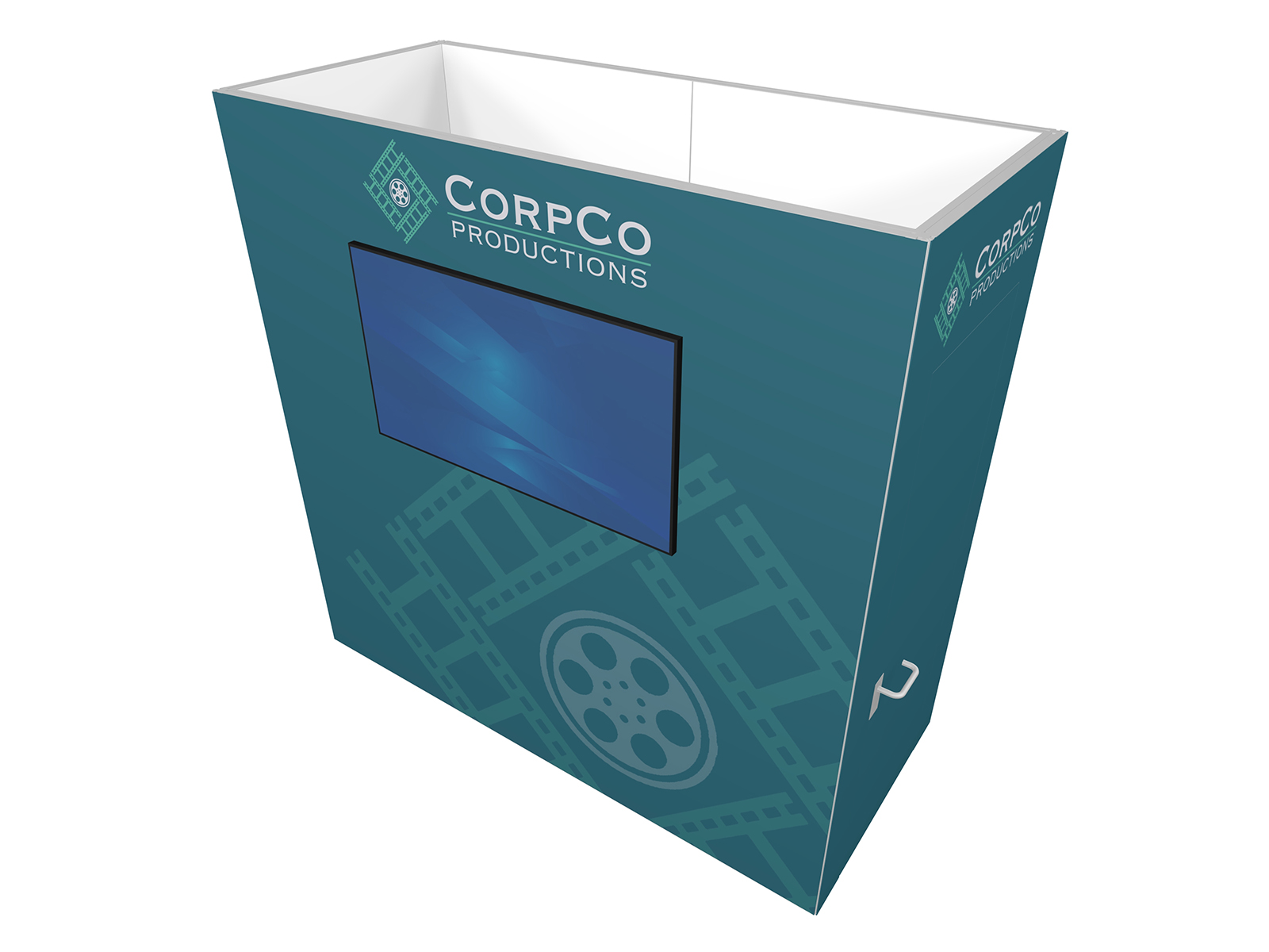 Quite often, a few custom elements added to the design can give the entire design a custom look even if it’s as simple as some colorful laminated workstations, shelves, or a reception counter. Custom laminated soffits and backlighting are also nice touches that are inexpensive and well worth the investment. As a bonus, if you re-rent the same exhibit, your second rental will most likely be less expensive, since your first rental covered the cost of those custom components.