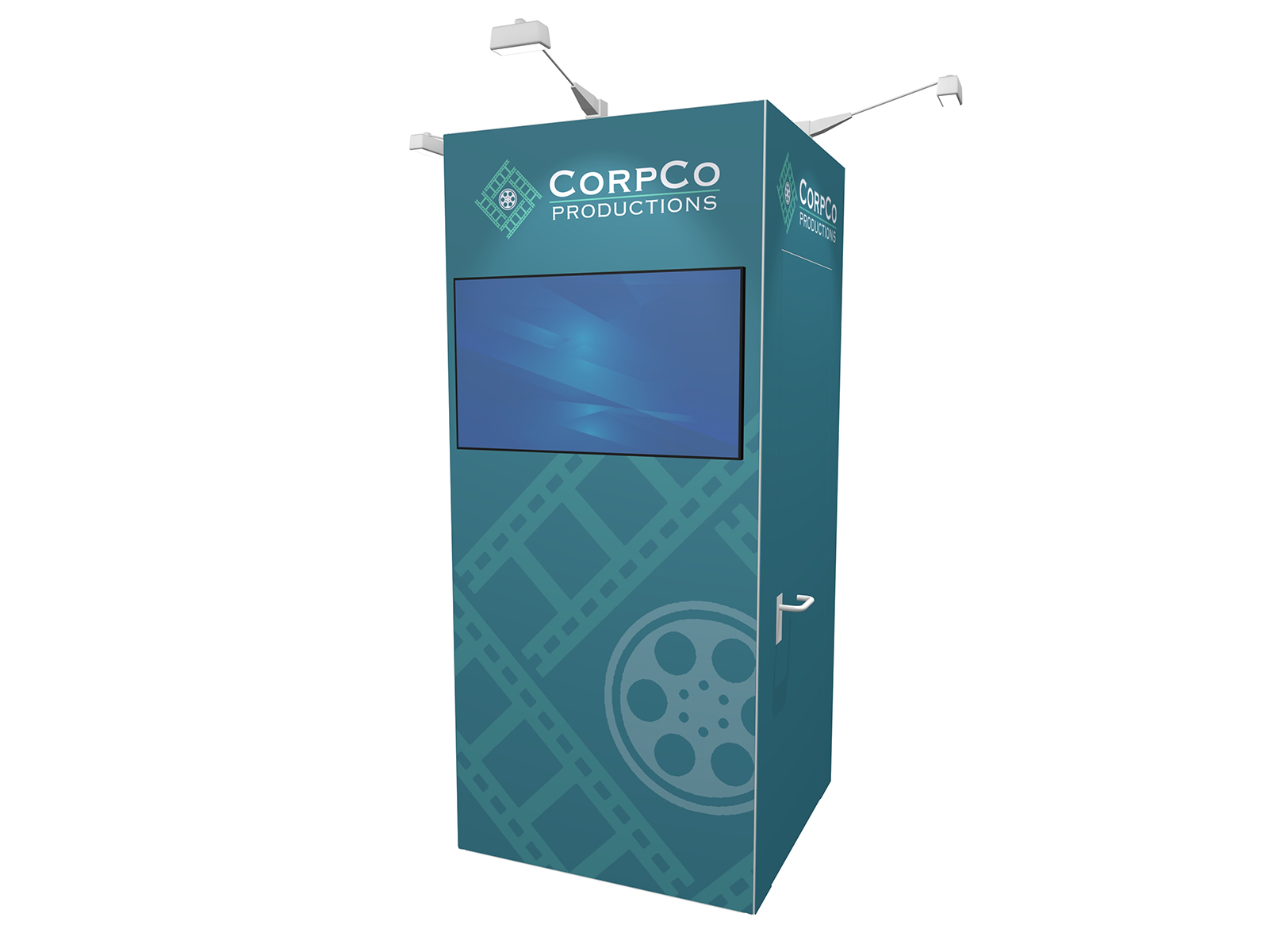 RE-1710 Rental Tower Exhibit -- Image 1Towers have become an important feature of many rental island designs. They’re often 16 ft. high, offer expansive graphic real estate, and are ideal for large monitors. In addition, island towers provide exhibitors with convenient locking storage.