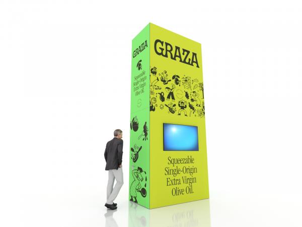 GK-1702 Gravitee Tower Exhibit -- Image 2Towers are the ideal building block for creating a customized island exhibit. Start by choosing the tower size. Then add counters, workstations, lightboxes, and furniture to complete the design. For many exhibitors, flexibility is crucial. Their booth size and messaging often changes depending on the show and the audience. A tower serves as the central feature in the booth design but everything else can vary. Perfect!