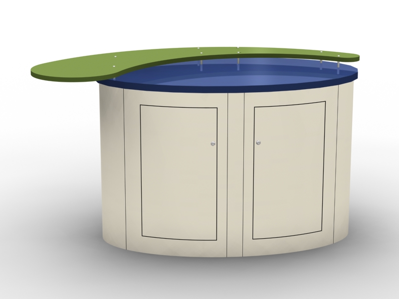 There are nearly 200 choices in the Counters and Pedestals gallery at a range of prices and features. Nearly all come with locking storage. Most counters and pedestals are modular, meaning they disassemble for shipping, but there are quite a few custom counters which ship fully assembled. Don't see exactly what you want? No problem. We specialize in designing and building counters and pedestals that meet any need.