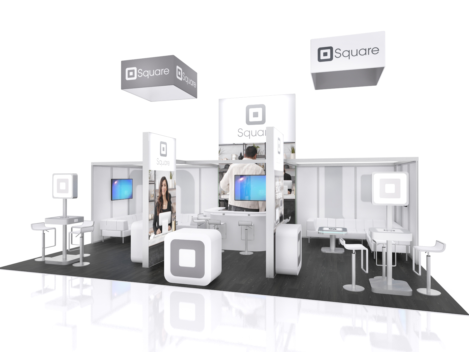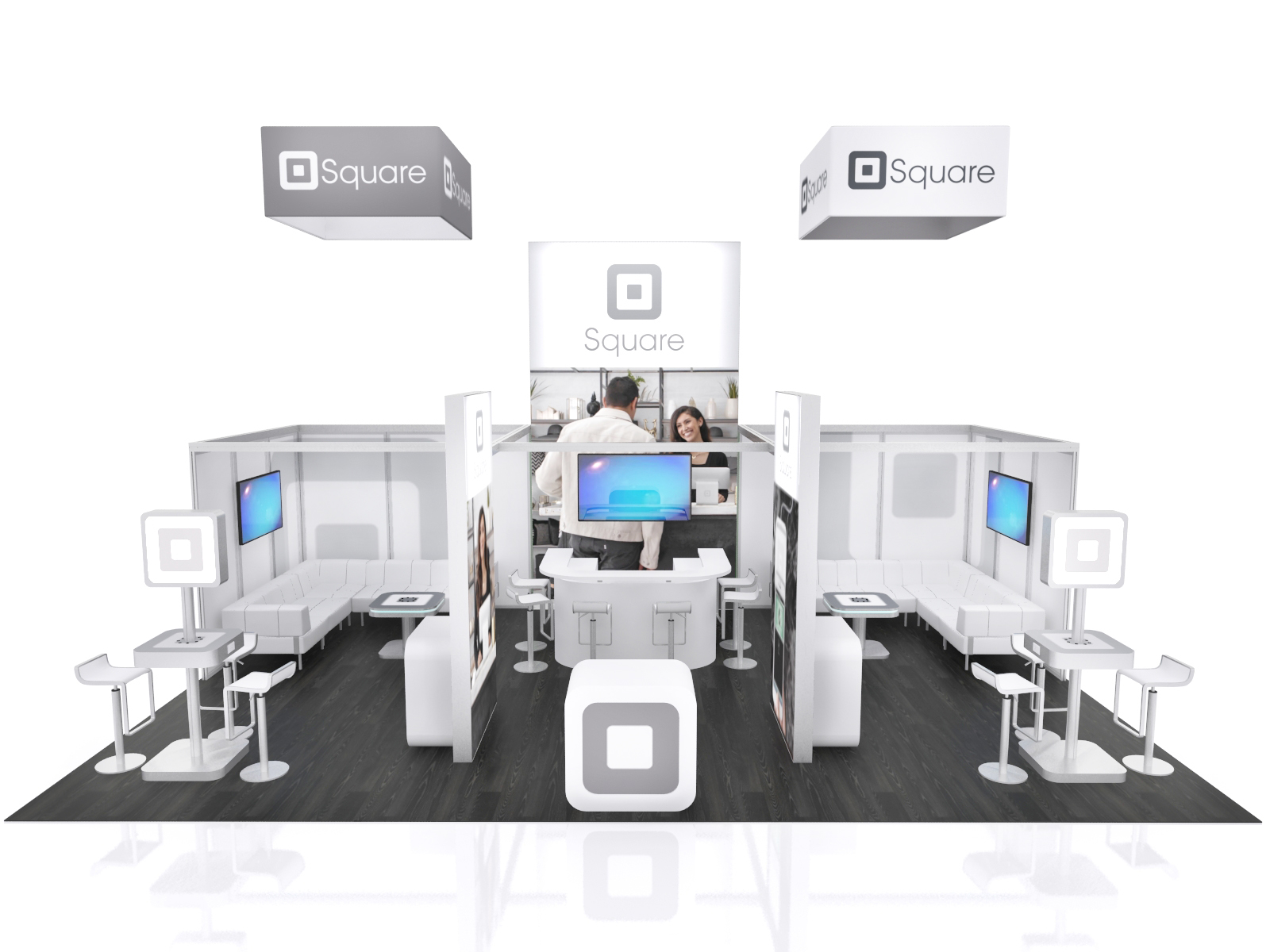 Island exhibits are displays bordering 3-4 aisles, with the smallest starting at 20’ x 20’. Inline exhibits, by contrast, typically border 1 or 2 aisles and are usually 10’ x 10’ or 10’ x 20’.