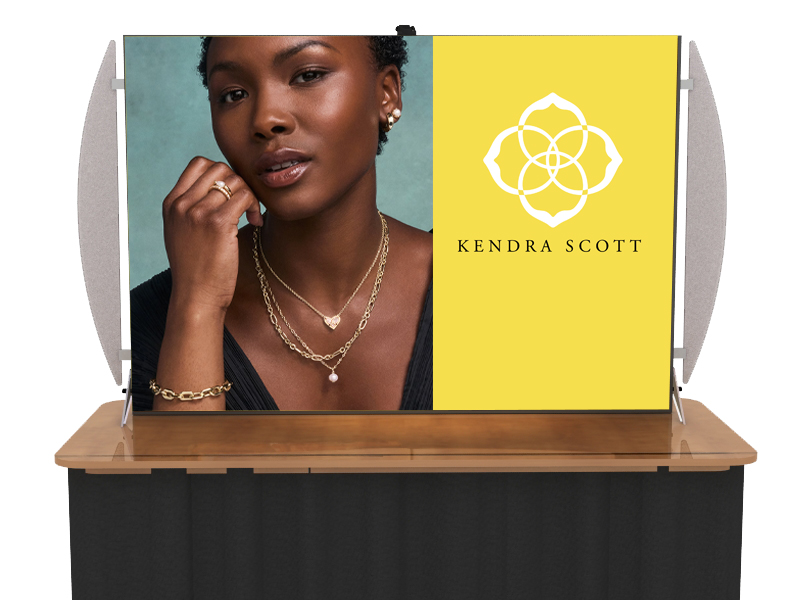 The slim frame leaves ample room on the table for literature, promotional products, and demo materials. Best of all, the SEGUE table top packs in a portable case with wheels. Choose from three existing sizes or design a size that fits your marketing goals.