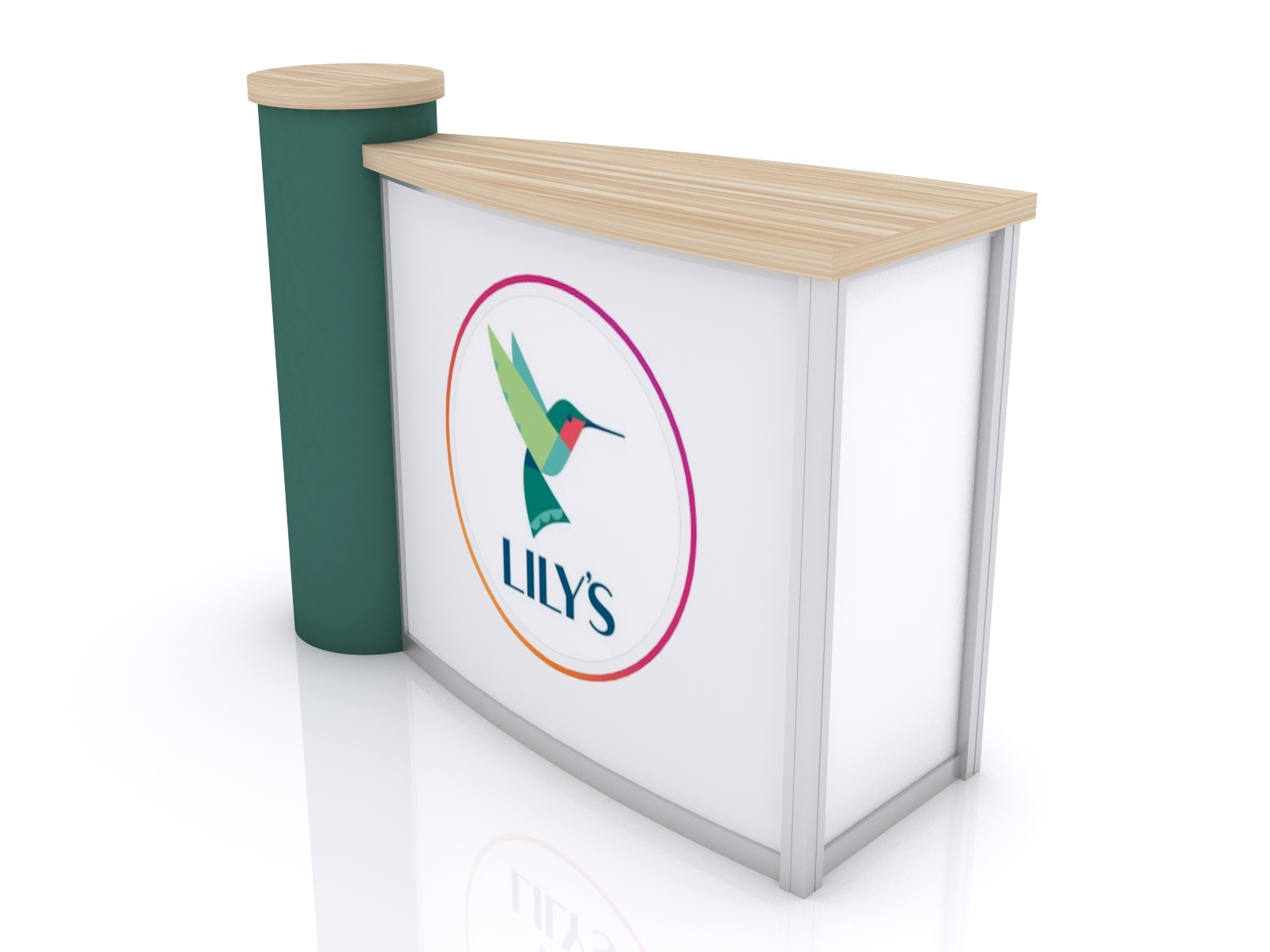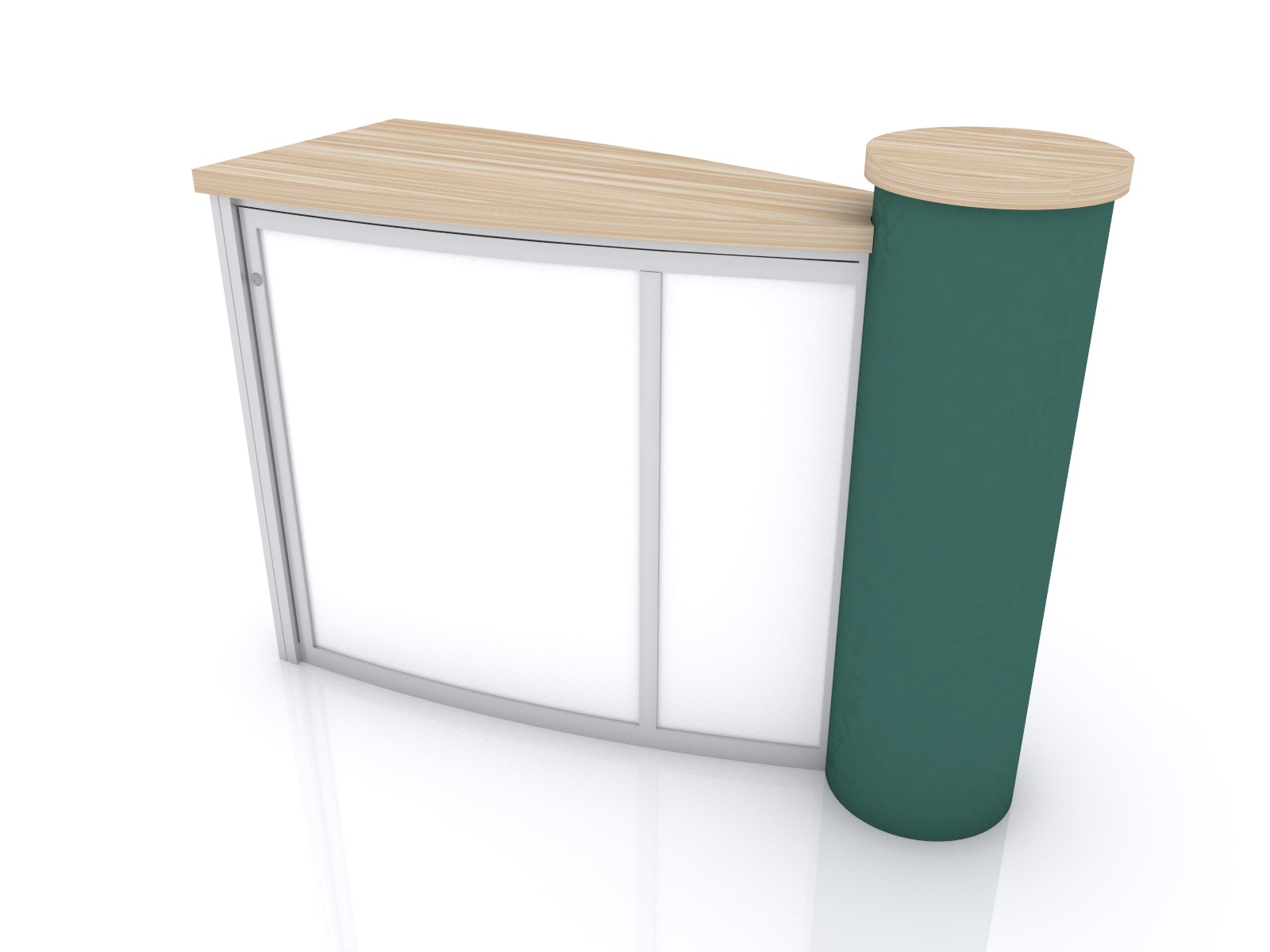 When choosing the right counter or pedestal for your display, consider how you will use it on the show floor. Do you need locking storage? Will the counter or pedestal hold a lead retrieval machine, laptop, or other electrical device? If so, you will need wire management. That may be as simple as ordering a grommet for the counter. If you are planning to use a tablet computer, consider the tablet insert option for the counter top. This option is practical, attractive, and secure for many tablets, such as an iPad.