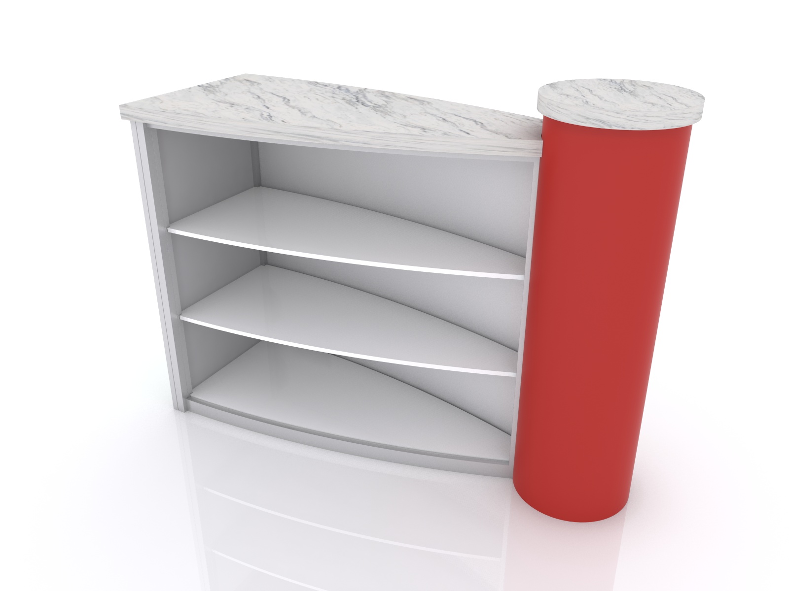 There are nearly 200 choices in the Counters and Pedestals gallery at a range of prices and features. Nearly all come with locking storage. Most counters and pedestals are modular, meaning they disassemble for shipping, but there are quite a few custom counters which ship fully assembled. Don't see exactly what you want? No problem. We specialize in designing and building counters and pedestals that meet any need.