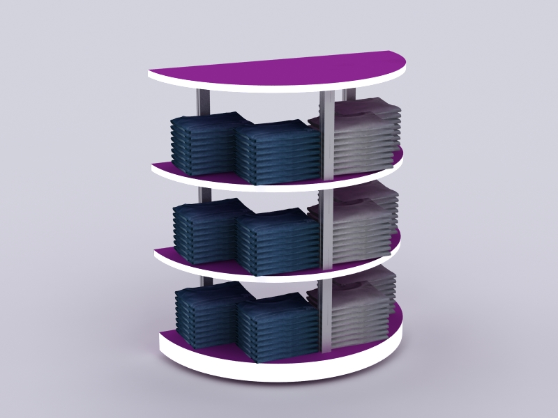 • (1) Half-Round Clothing Kiosk with (4) Laminated Shelves (47" W x 24" D x 50" H)