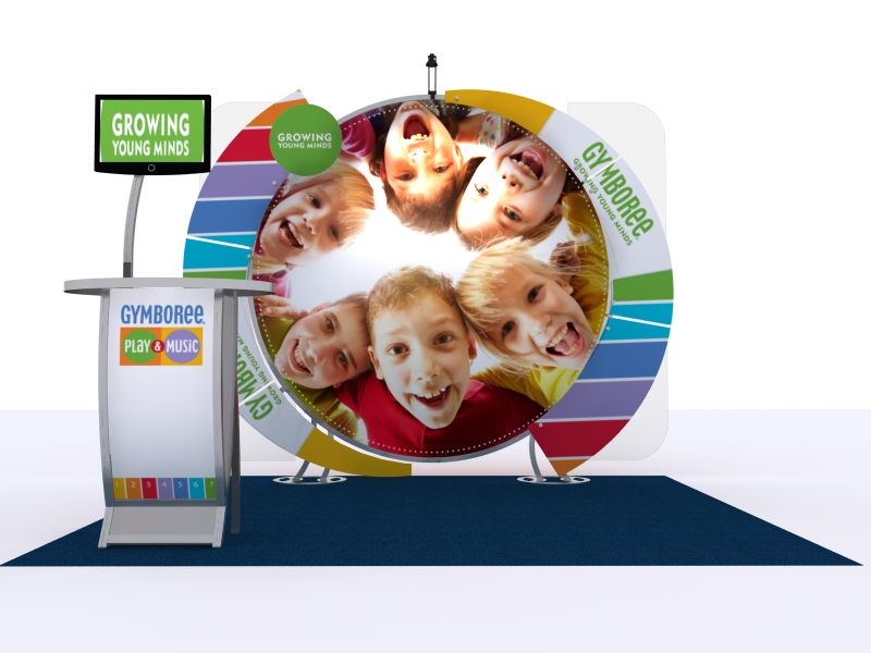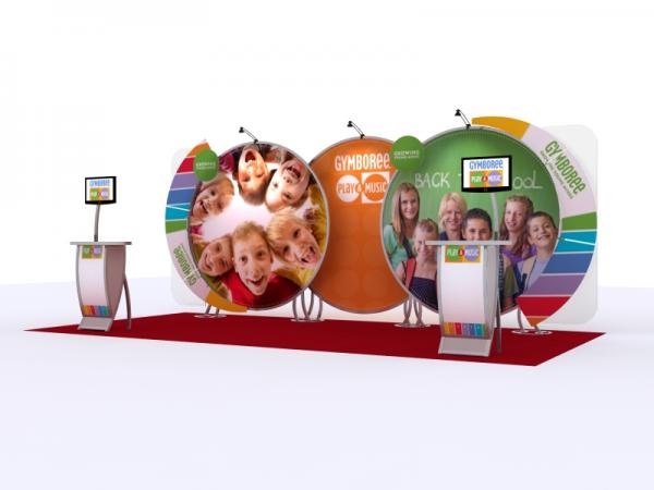 If 50 is the new 30, then circles and curves are the new squares and rectangles. Here's the bottom line: You go to a trade show to be seen, so be seen with an exhibit that elicits "Oohs and Aahs." Don't settle. The VK-1320 and VK-2919 do more than communicate your message with bold tension fabric graphics and colorful accent wings. They have a power and presence to stop an attendee in the aisle. That's what you want from a trade show display. Both reconfigurable 10 ft. and 20 ft. versions come with VK-1605 workstation, which is perfect for an A/V demo or just guiding a potential client through your website.