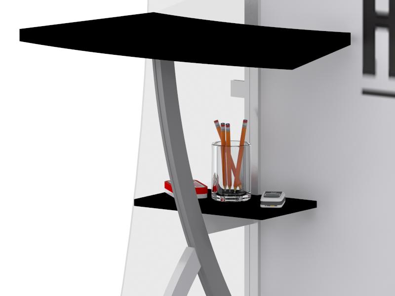 MOD-1402 Hostess Shelf Accessory -- Image 1You can never have too many shelves and too much storage in a trade show booth. The MOD-1402 Hostess Shelf is the perfect compliment to the standard Sacagawea workstation shelf. It fits below the workstation shelf and is an ideal spot to hold pens, promotional giveaways, or your phone. Add one to each side.