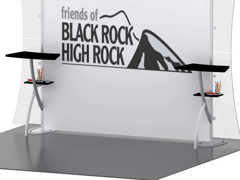Graphics: Primarily one large tension fabric graphic @ 7.5 ft x 6.75 ft with a smaller tension fabric graphic and/or direct print graphics. Velcro tension fabric connections.