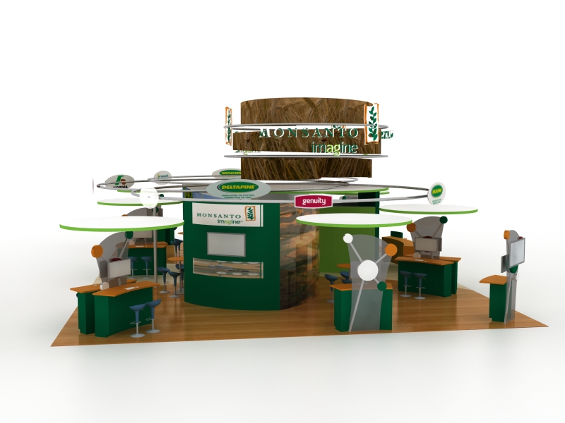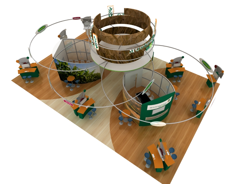 DM-1061 Trade Show Exhibit -- Image 1This is an ideal island display for any product or service. First, re-configuring your stunning island to inlines has never been easier. The DM-1061 is high impact island with practical workstations, monitor stands, and storage. Turn the 40 x 60 into a 20 ft. or 30 ft island using same components. Second, all the designs have ample floor space, making it easy to interact with clients. The large format graphics ensure you'll be seen in whatever configuration you choose.