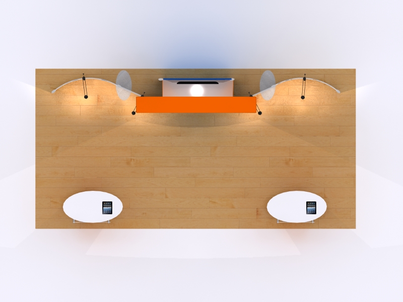 VK-2066 Trade Show Exhibit -- Image 1Every exhibitor has their unique marketing goals and budget, which is why there's no one perfect display. The VK-1053 and VK-2066 hybrid designs blend the benefits of multiple large format tension fabric graphics with convenient storage and audio/visual options. The engineered aluminum frame is attractive, durable, and easy-to-assemble. The modular components allow for reconfigurability and expansion. The two reception counters include iPad Counter inserts. The iPad inserts are ideal demo stations, and design makes it simple to remove them at the end of the day.