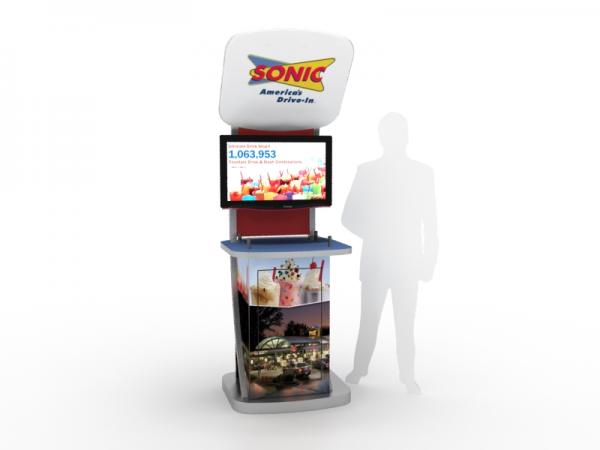 Workstations and Kiosks have become indispensable to most trade show displays. It's hard to imagine a booth without a monitor, laptop, or tablet computer anymore. You'll find nearly 100 choices in the Workstation and Kiosk gallery at a range of prices and features, many with locking storage. Most are modular, meaning they disassemble for shipping, but there are quite a few custom workstations which ship fully assembled. Don't see exactly what you want? No problem. We specialize in designing and building workstations and kiosks that meet any need.
