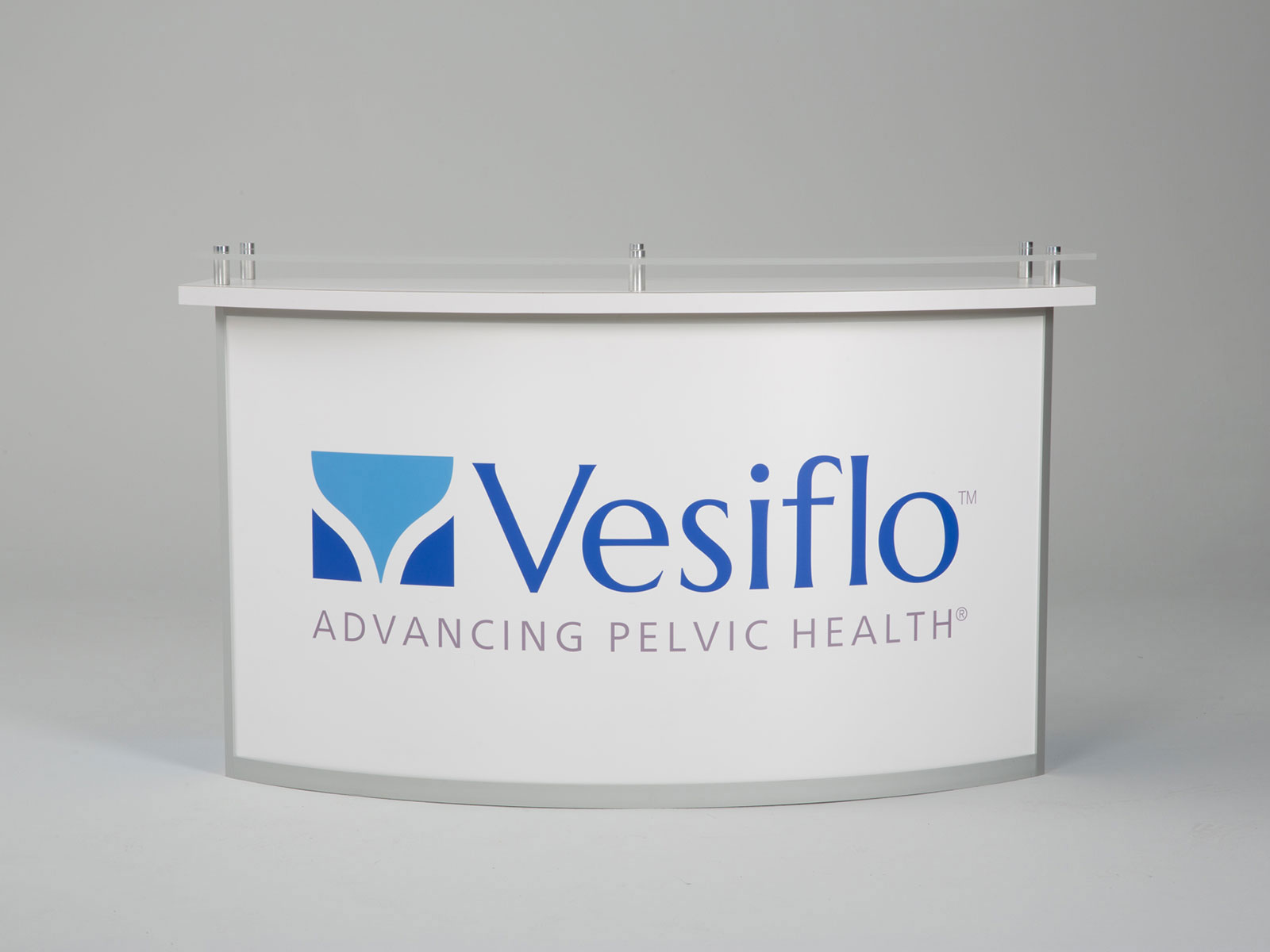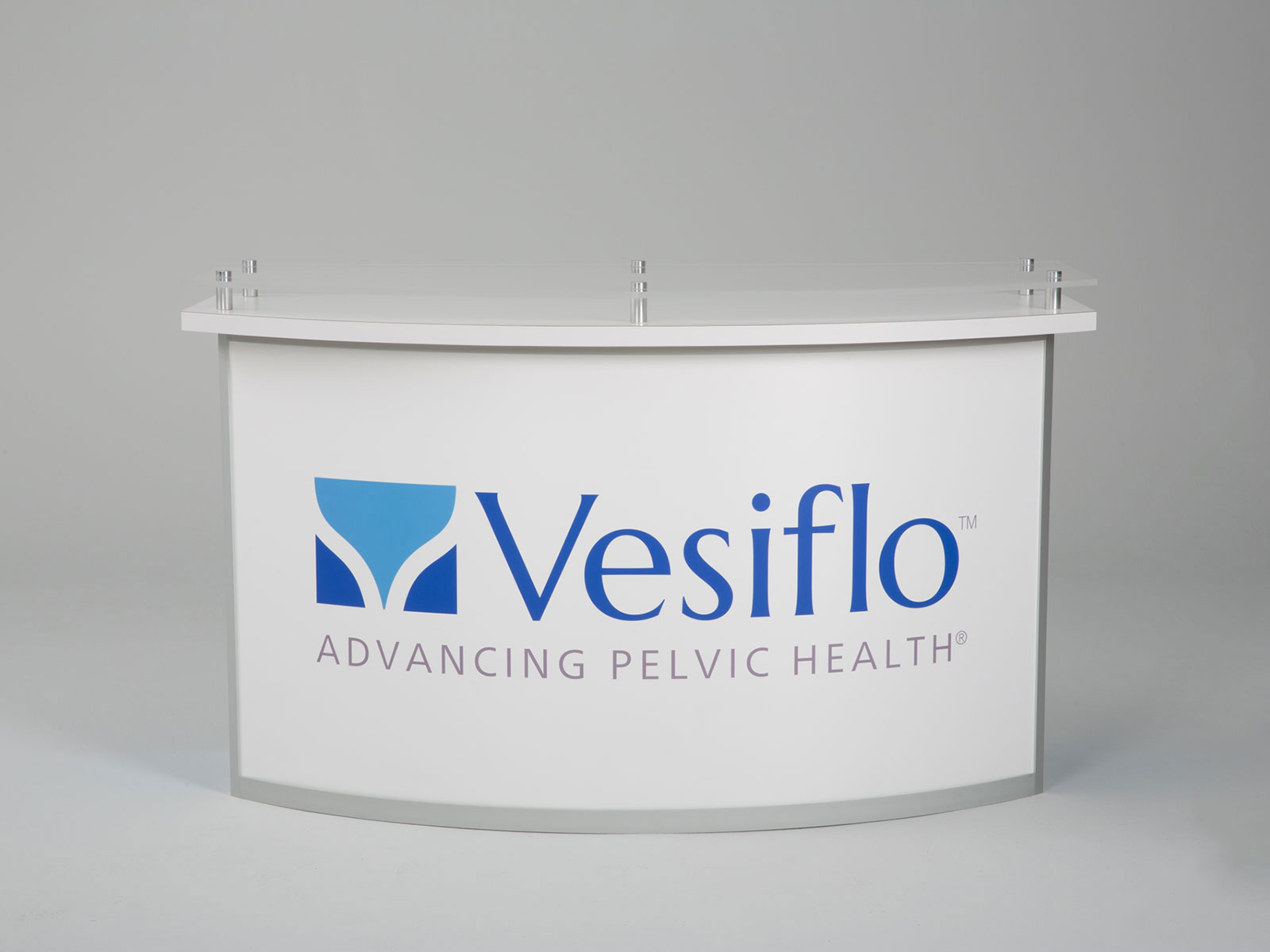 Quite often, a few custom elements added to the design can give the entire design a custom look even if it’s as simple as some colorful laminated workstations, shelves, or a reception counter. Custom laminated soffits and backlighting are also nice touches that are inexpensive and well worth the investment. As a bonus, if you re-rent the same exhibit, your second rental will most likely be less expensive, since your first rental covered the cost of those custom components.