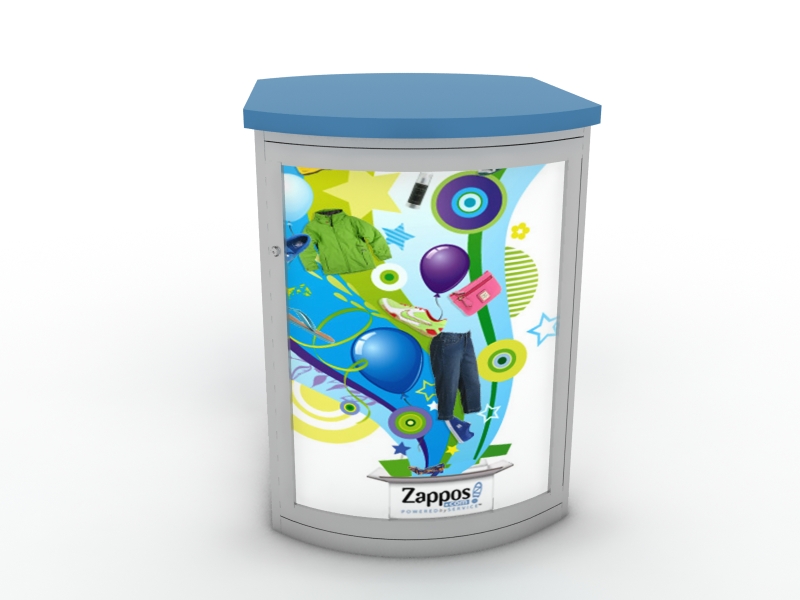 MOD-1269 Modular Pedestal with Locking Storage -- Image 1The MOD-1269 is an attractive portable trade show counter with locking storage. The counter comes with an internal shelf and can be assembled in minutes with the enclosed hex key tool. The MOD-1269 works well in both inline and island displays, and the graphic insert option offers branding on 1,2, 3, or 4 sides. Choose from hundreds of laminate choices from Wilsonart, Nevamar, and Pionite. Don't need a counter this large, see the MOD-1267, a smaller version.