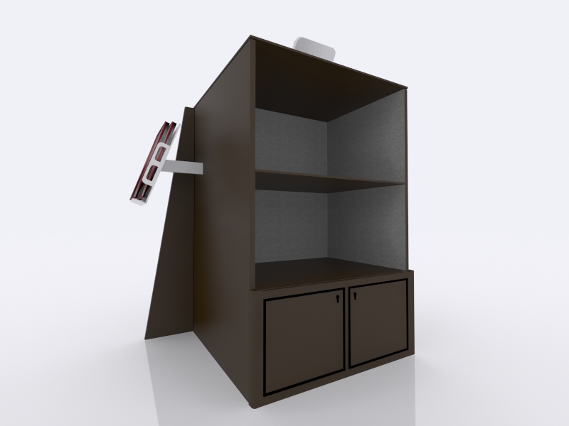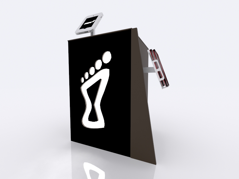 When choosing the right counter or pedestal for your display, consider how you will use it on the show floor. Do you need locking storage? Will the counter or pedestal hold a lead retrieval machine, laptop, or other electrical device? If so, you will need wire management. That may be as simple as ordering a grommet for the counter. If you are planning to use a tablet computer, consider the tablet insert option for the counter top. This option is practical, attractive, and secure for many tablets, such as an iPad.
